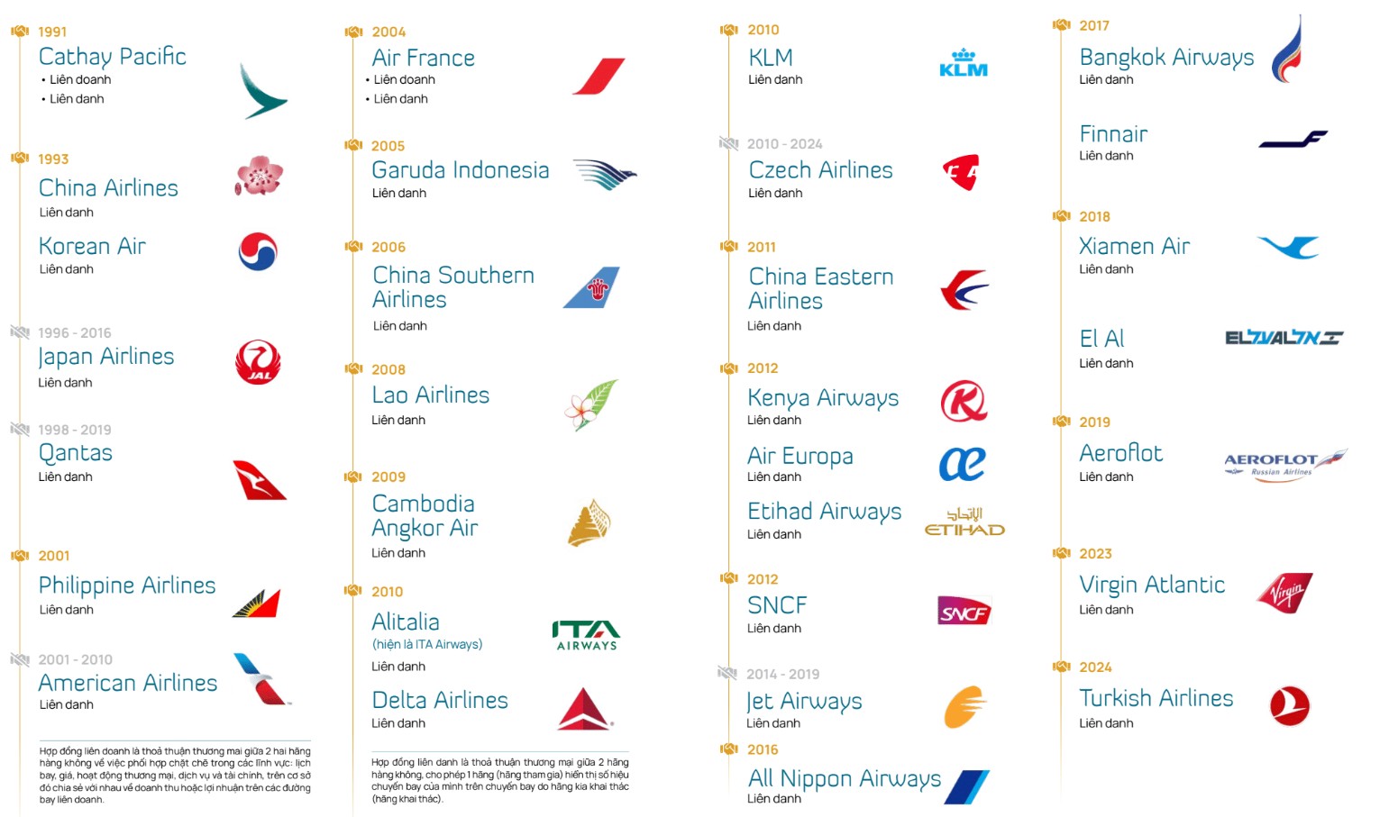 Hơn nữa, Vietnam Airlines đã thiết lập mối quan hệ hợp tác chiến lược với nhiều hãng hàng không lớn trên thế giới, từ hợp tác thương mại song phương đến các hình thức hợp tác linh hoạt. Điều này không chỉ giúp hãng mở rộng thị trường mà còn gia tăng sức cạnh tranh trong ngành hàng không toàn cầu.