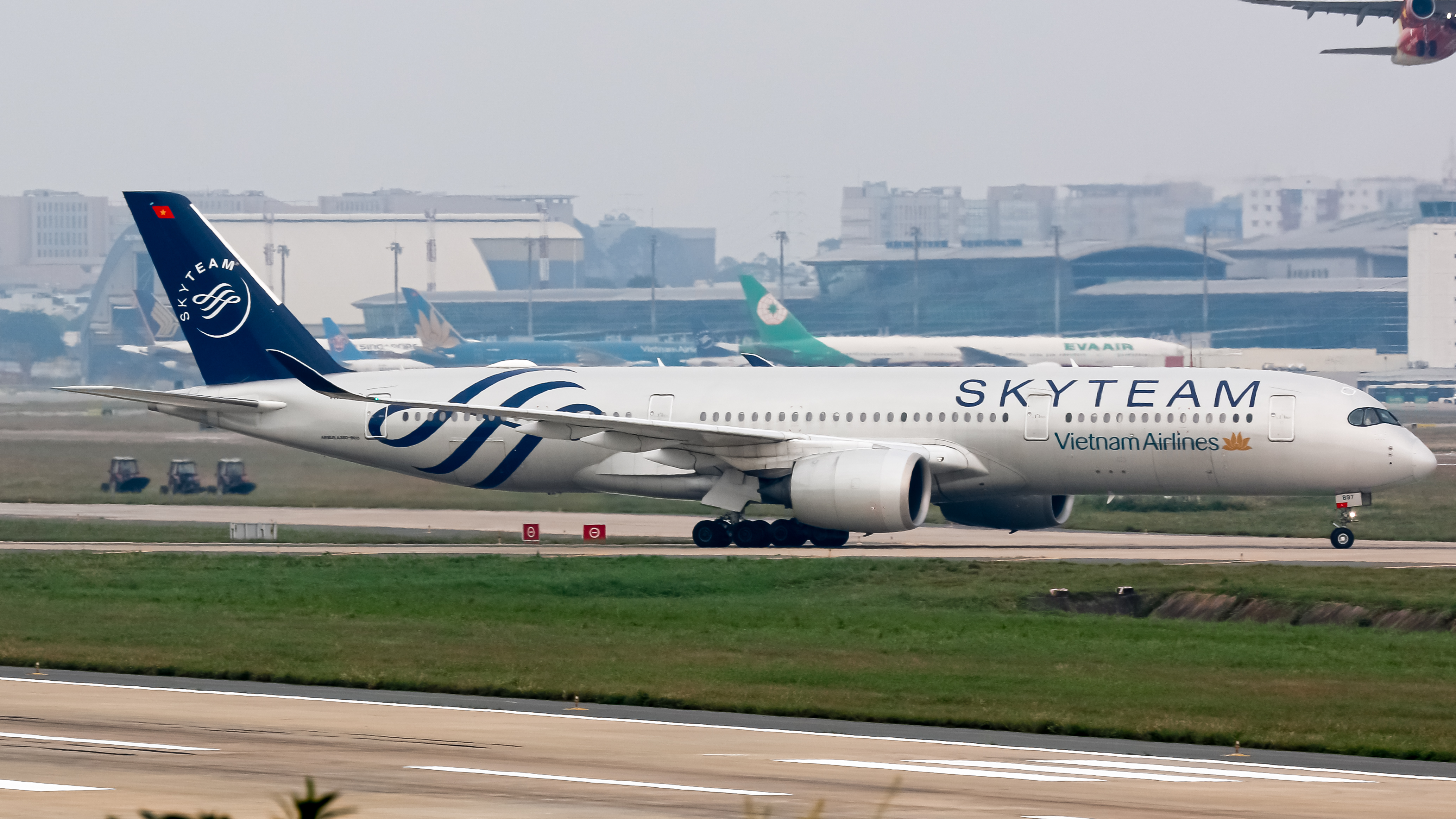 Toàn bộ chuyến bay từ khoảnh khắc lăn ra đường băng cất cánh hay hạ cánh xuống sân bay đều diễn ra êm ái với A350. Trong hình là 1 chiếc A350 của Vietnam Airlines với màu sơn của liên minh hàng không “SKYTEAM”, thể hiện tầm vóc mạng lưới của hãng.