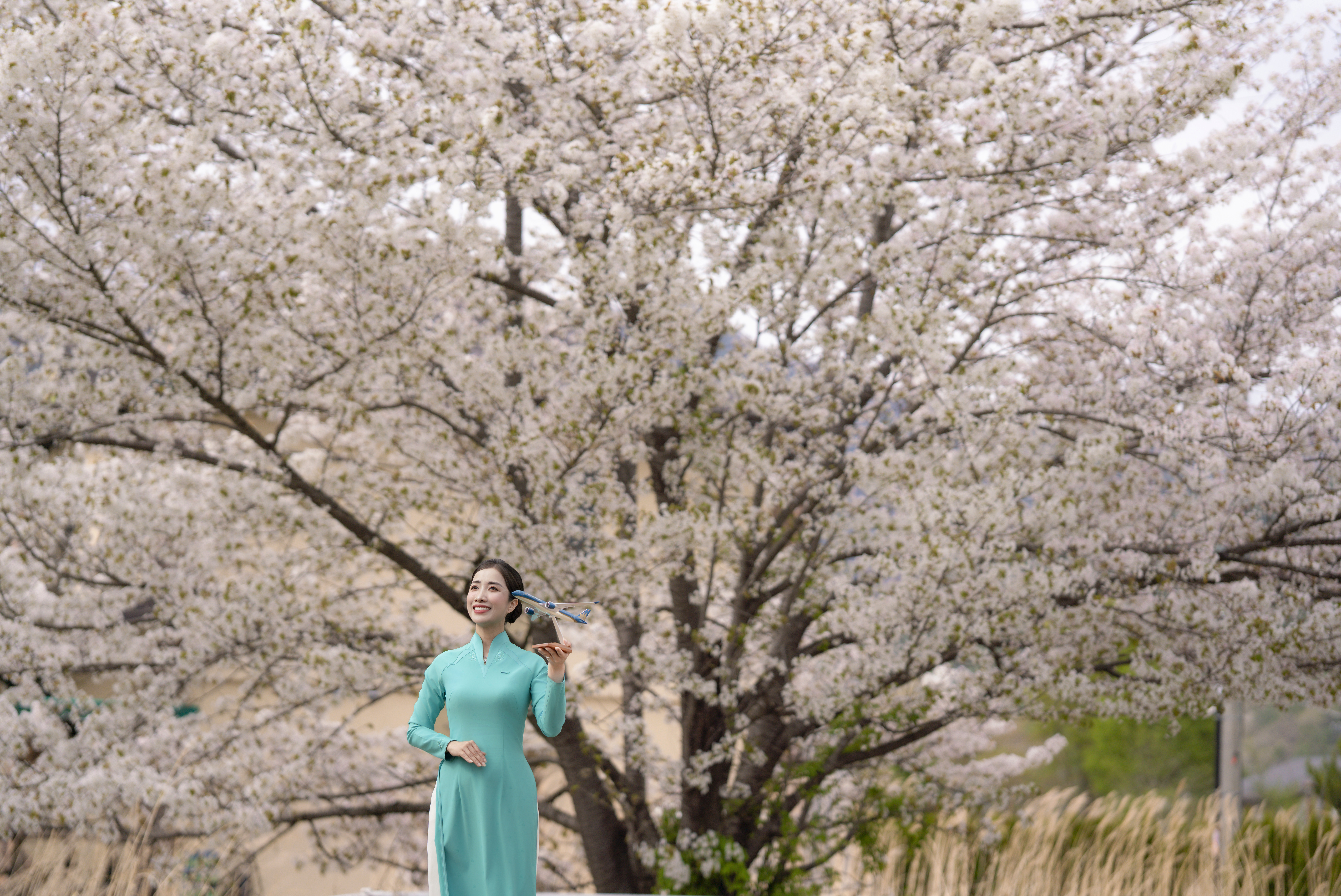Non nước hữu tình,hoa anh đào đẹp như một bức tranh,người con gái Việt Nam bên tà áo dài duyên dáng.