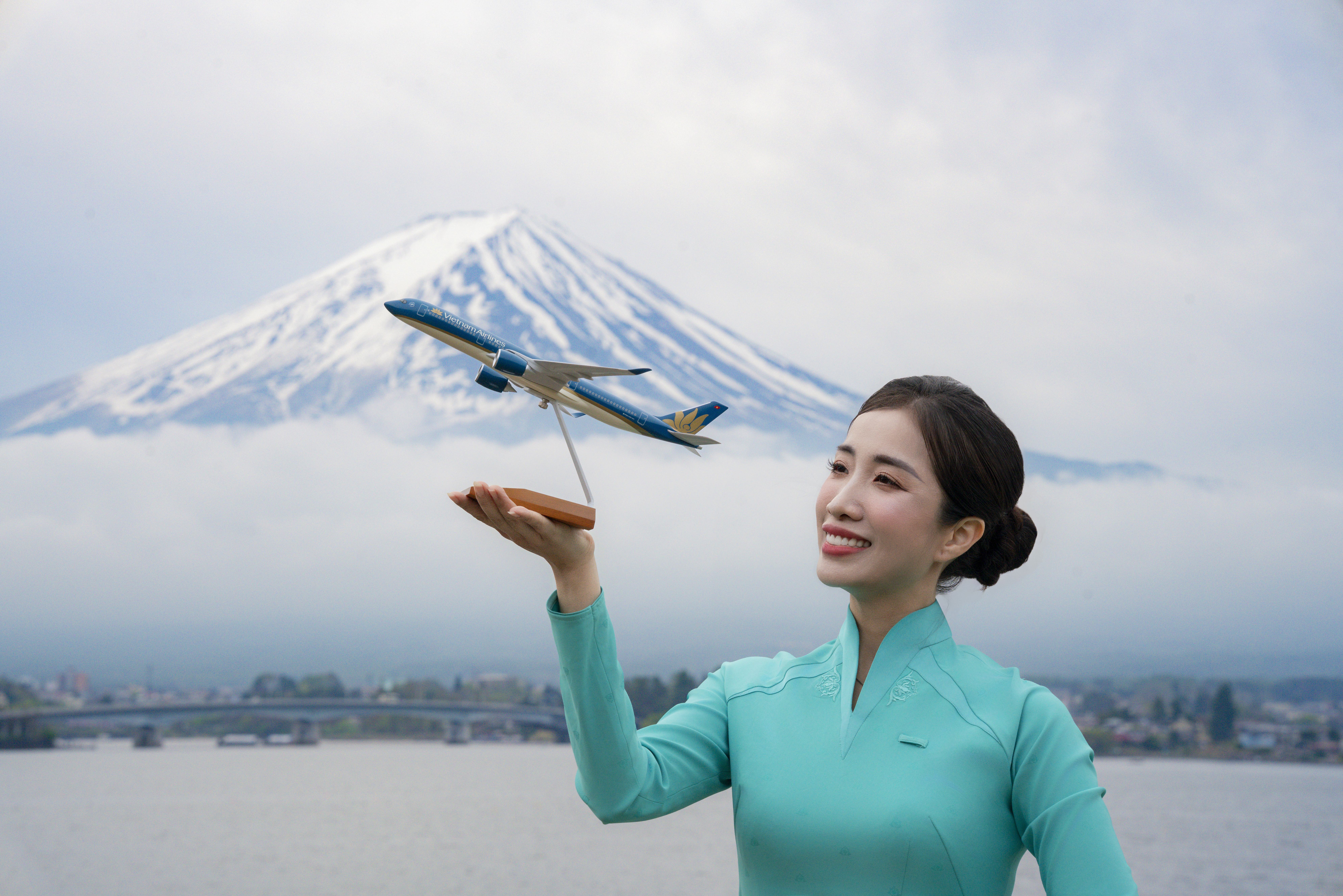 Ui Vietnam Airline cạnh Phú Sĩ cùng màu xanh hợp quá luôn