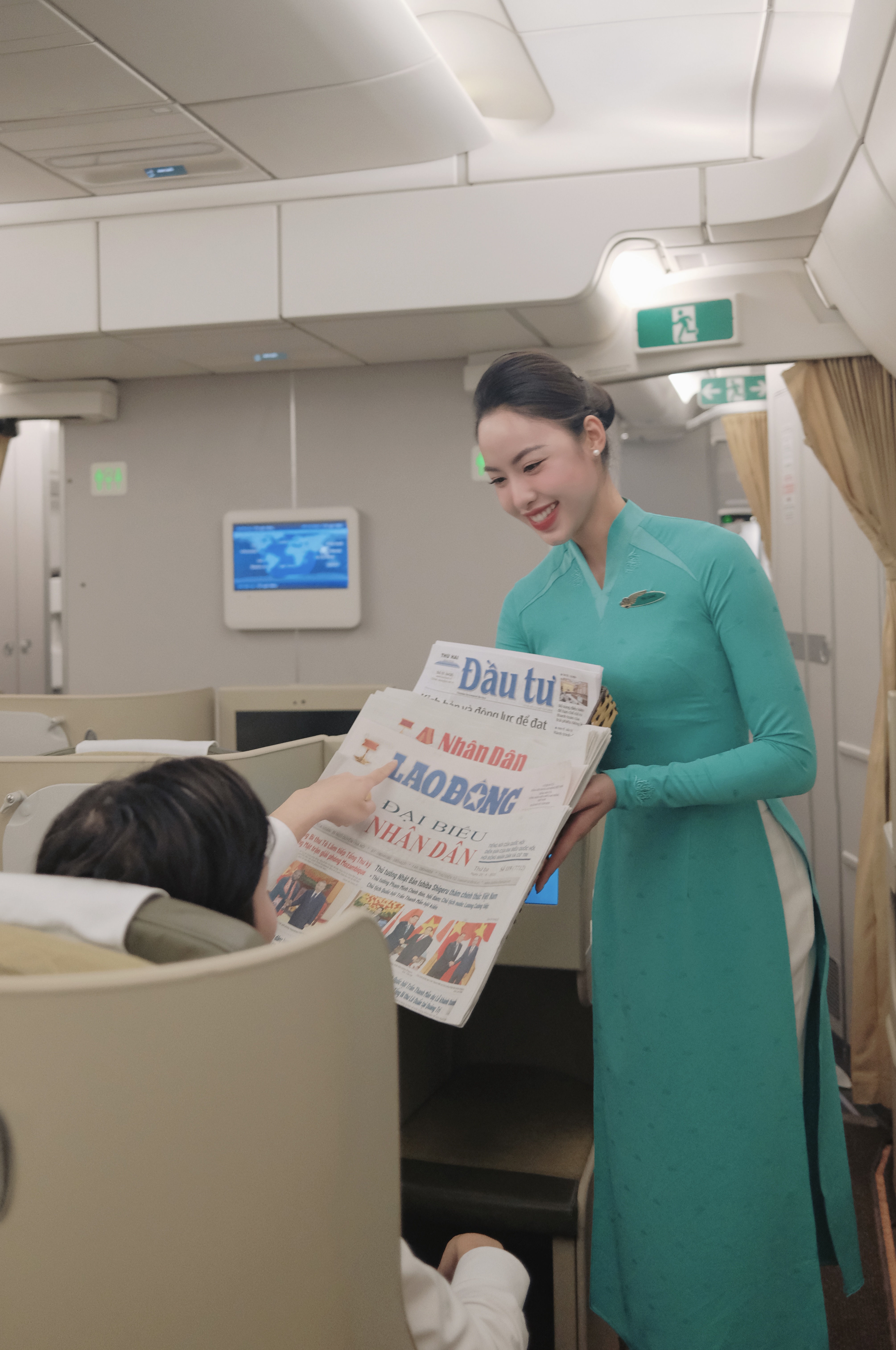 Từ nụ cười rạng rỡ đến cử chỉ ân cần, tiếp viên Vietnam Airlines chính là hình ảnh đại diện đầu tiên mang nét đẹp văn hóa Việt đến với hành khách. Không chỉ phục vụ chuyên nghiệp, họ còn là cầu nối cảm xúc, mang đến sự an tâm và thoải mái ngay từ giây phút chào đón lên máy bay.
