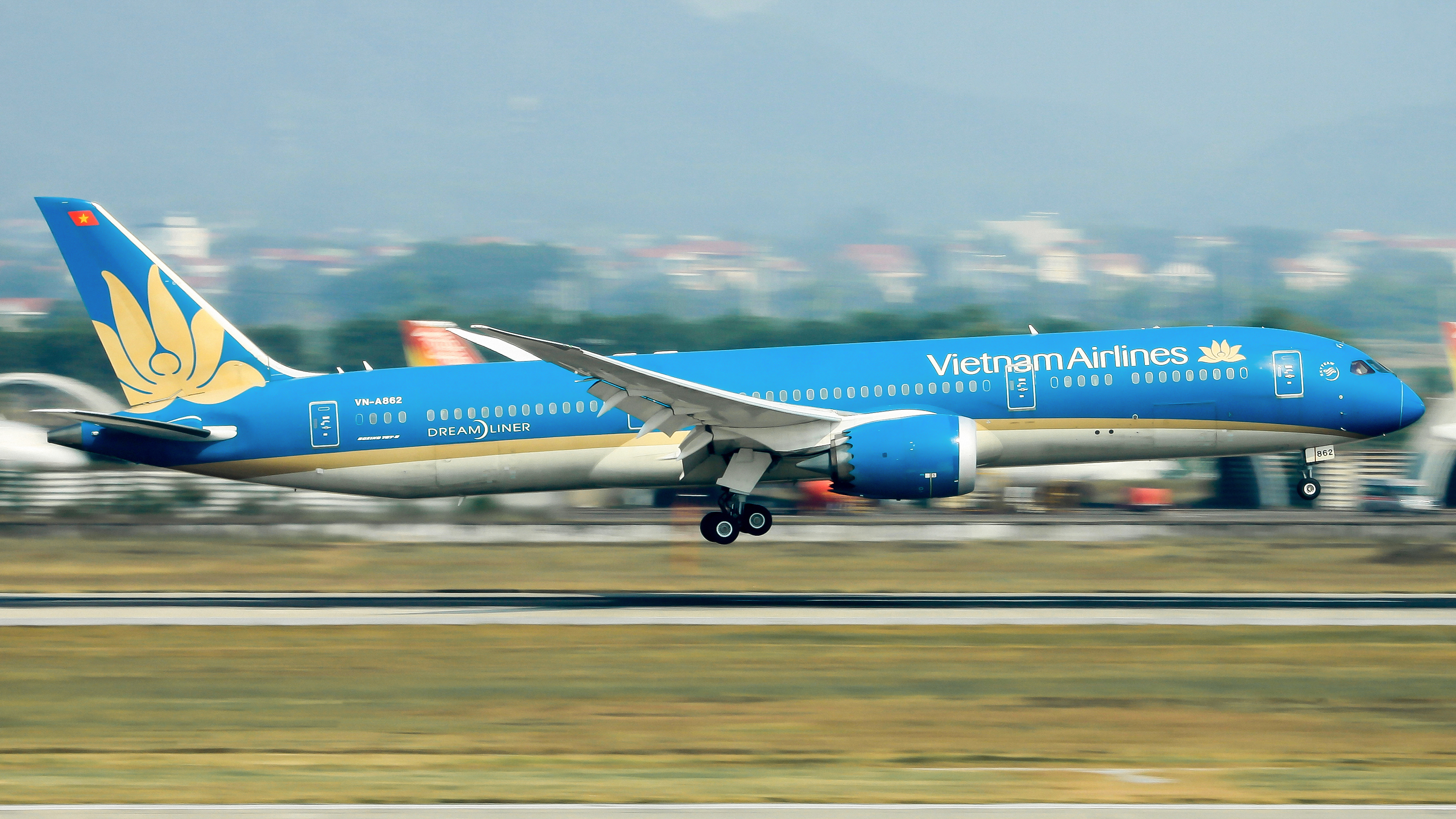 Ảnh 2: Máy bay Boeing 787 của Vietnam Airlines cất cánh, bắt đầu hành trình.