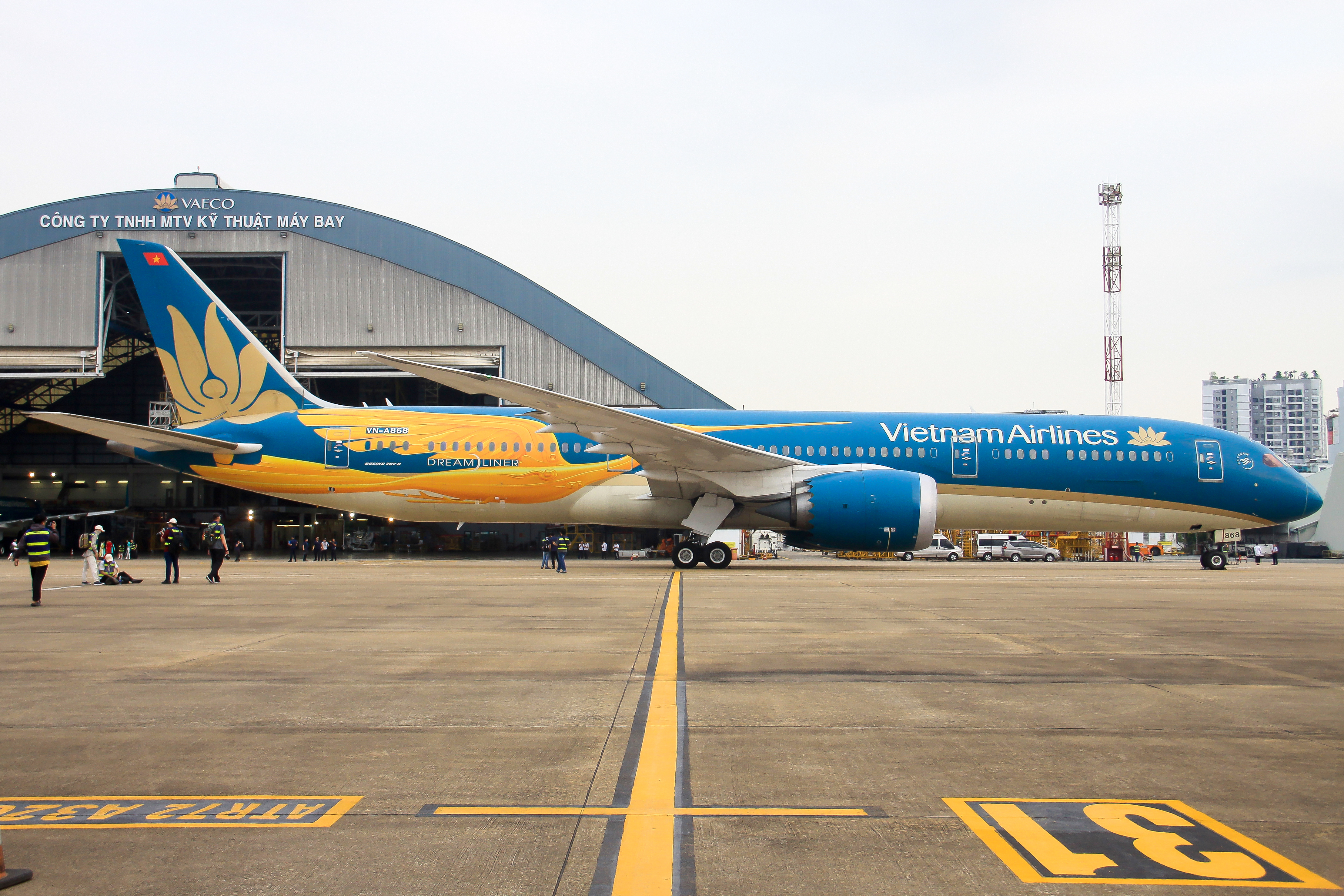 Ảnh 4: Máy bay Boeing 787-9 của Vietnam Airlines trong màu sơn đặc biệt “Chim Lạc”.