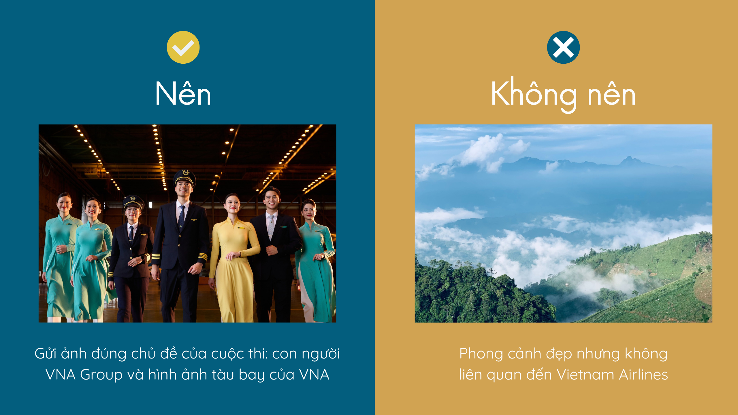 Hãy chắc chắn rằng tác phẩm của bạn phù hợp với chủ đề mà cuộc thi yêu cầu. Chọn những khoảnh khắc thể hiện con người Vietnam Airlines trong công việc hoặc hình ảnh tàu bay của hãng.