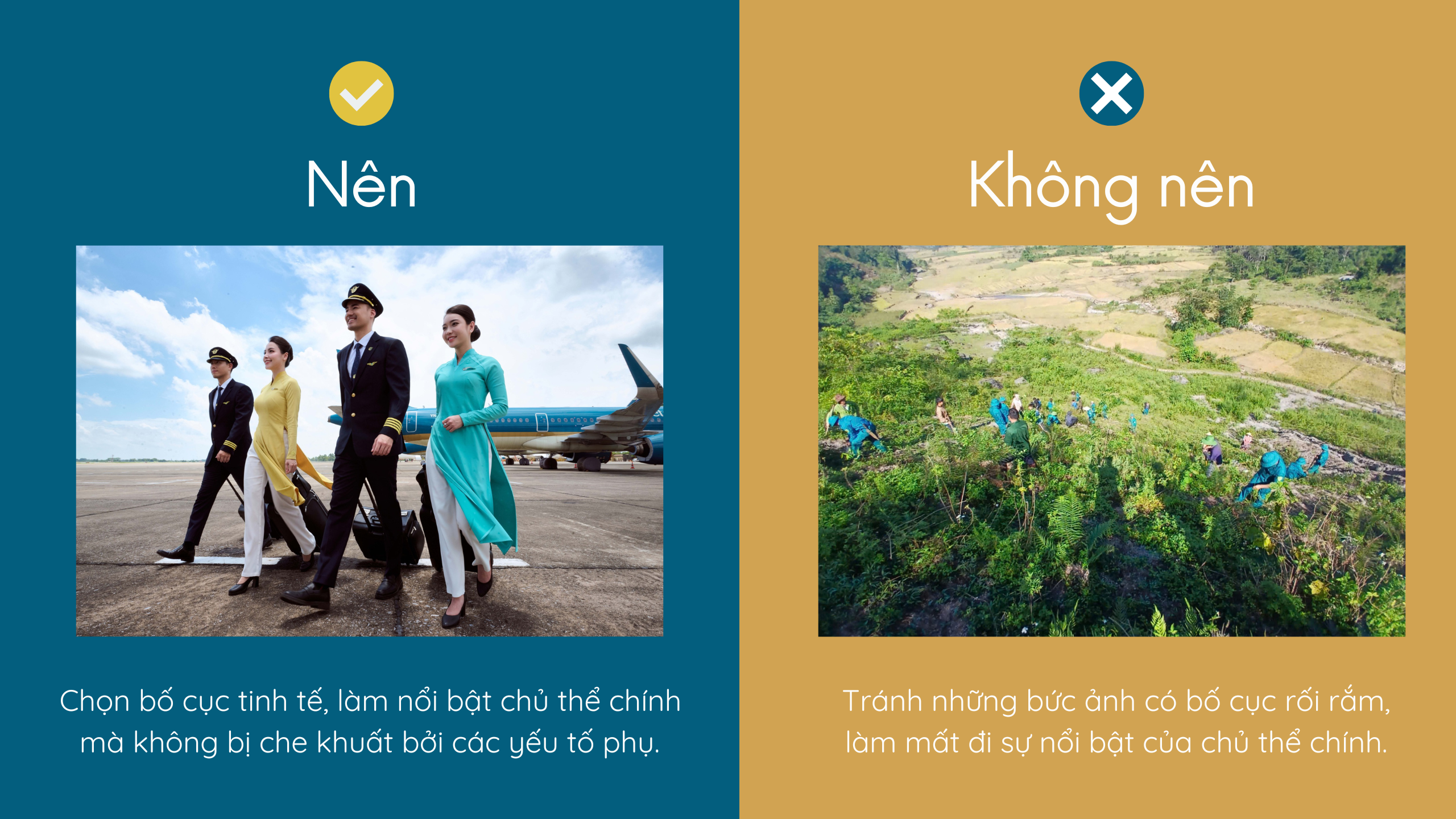 Đảm bảo rằng bố cục ảnh hợp lý, chủ thể chính được làm nổi bật, không bị che khuất bởi các yếu tố phụ.