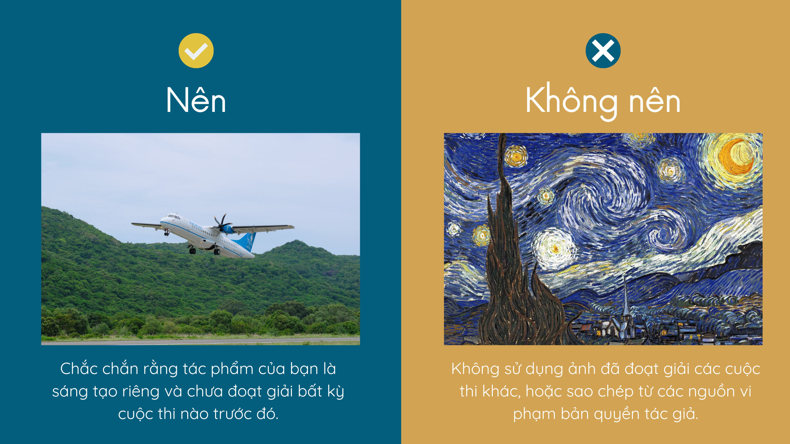 Tác phẩm của bạn phải là sáng tạo mới, chưa đoạt giải bất kỳ cuộc thi nào khác và đảm bảo không vi phạm bản quyền hoặc sử dụng hình ảnh mà không có sự cho phép.