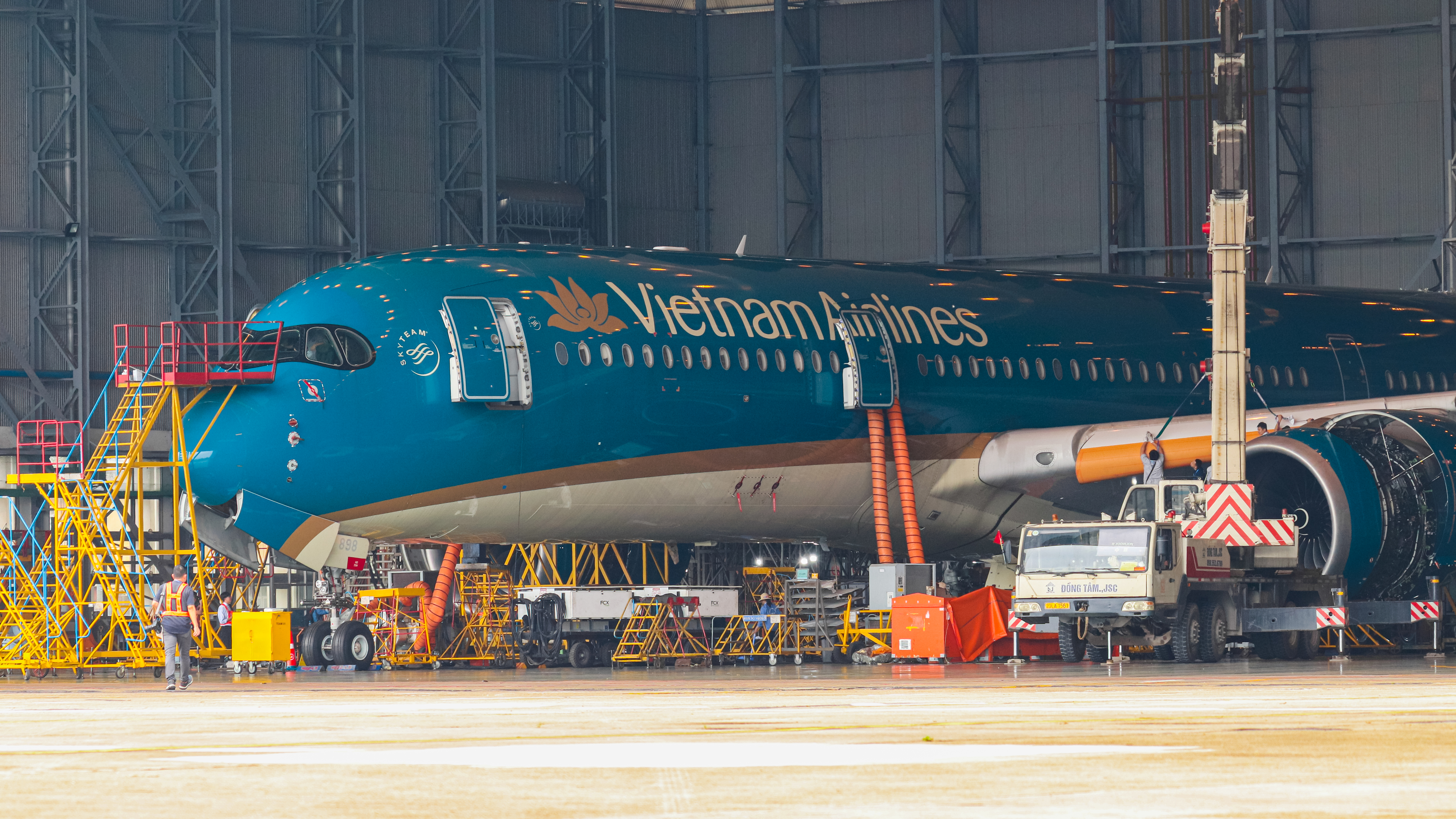Ảnh 2 : Tàu bay Airbus A350 đang thực hiện bảo dưỡng định kỳ, để đảm bảo an toàn trong các chuyến bay