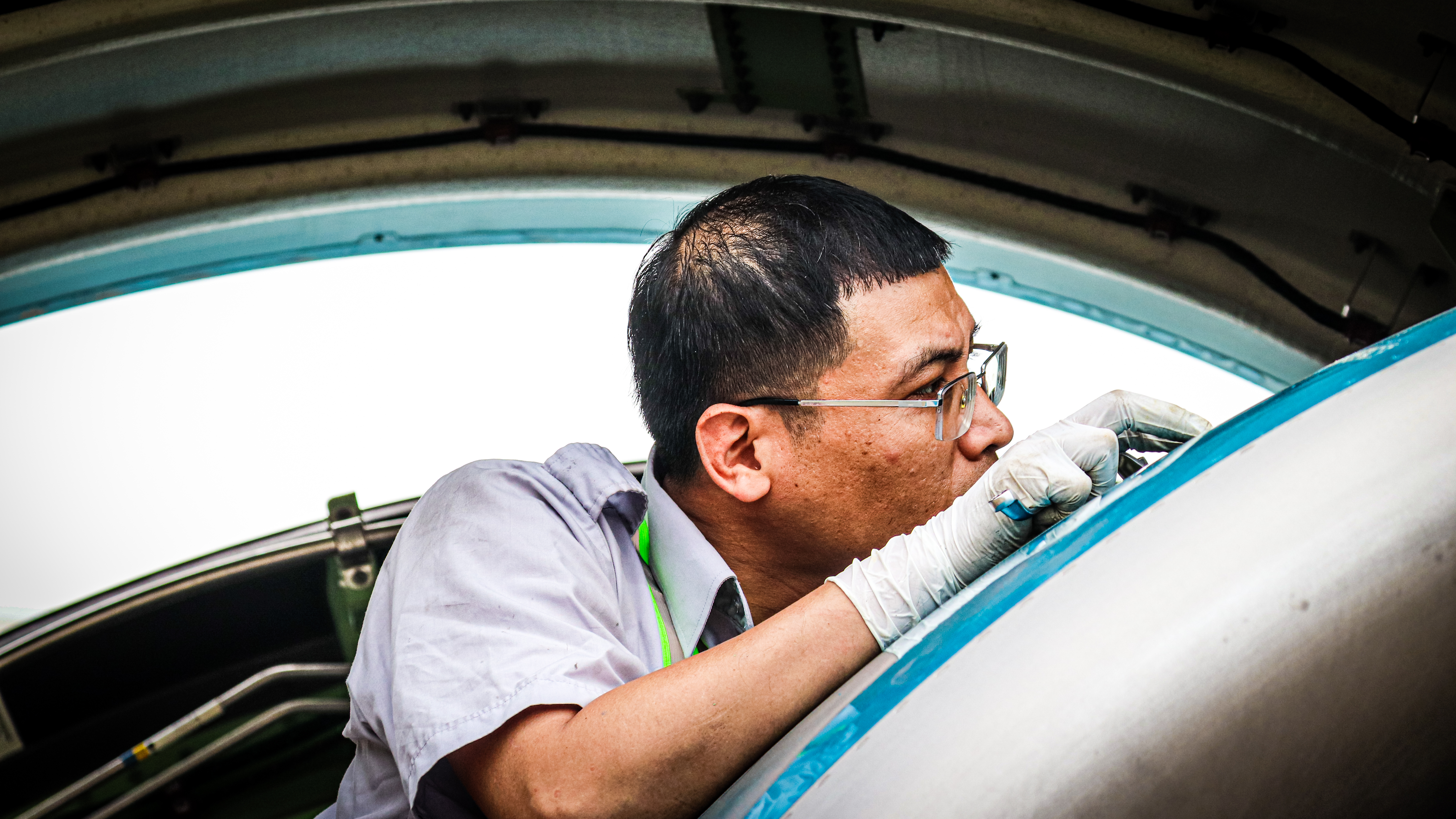 Ảnh 3 : Anh kỹ thuật viên đang kiểm tra hệ thống dầu của động cơ A321 Neo