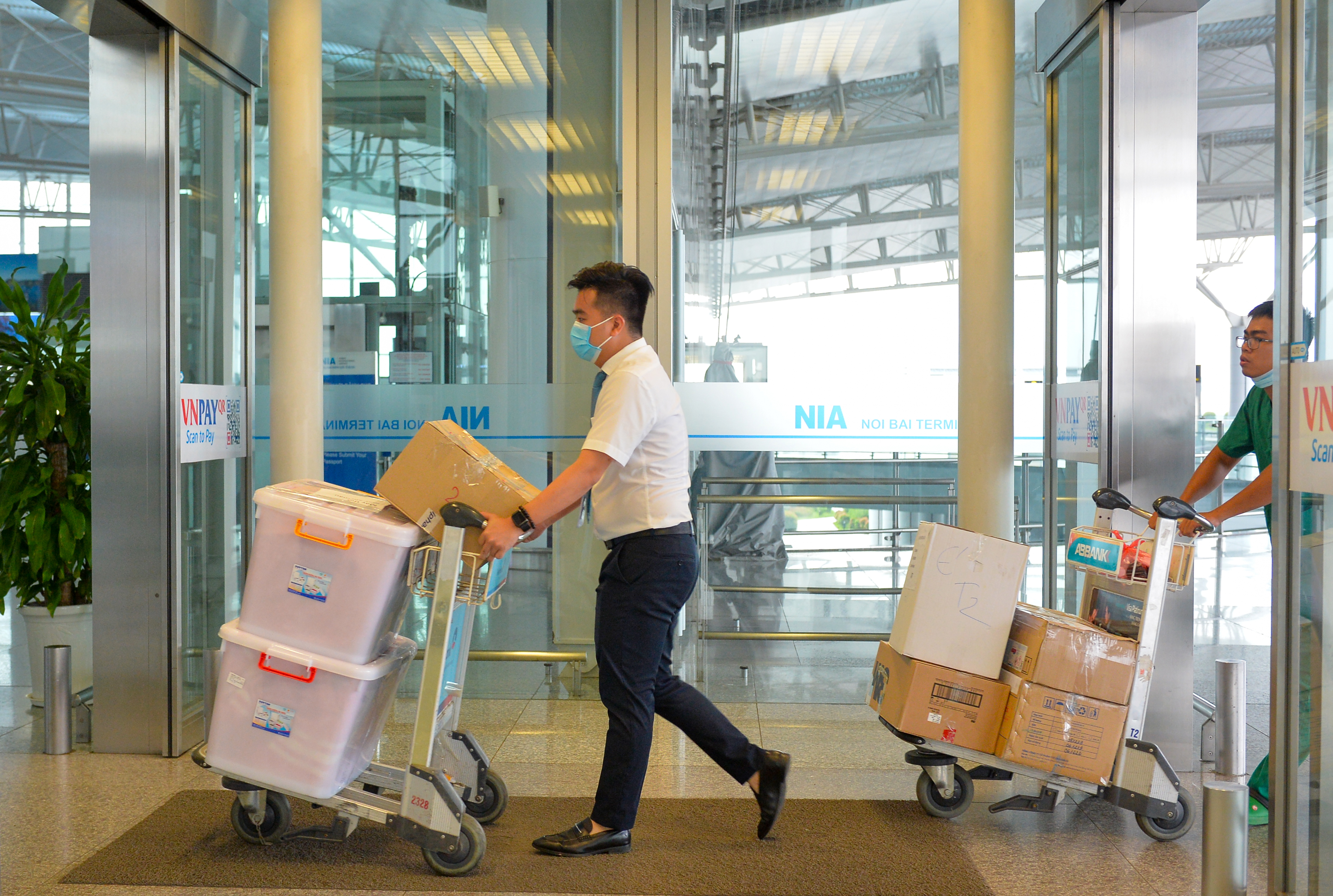 Tiếng lạch cạch xe đẩy phá vỡ không gian yên tĩnh tại nhà ga T2 sân bay quốc tế Nội Bài, hoạt động bay quốc tế đã tạm dừng khi các nước trên thế giới đang đối mặt với đại dịch Covid.