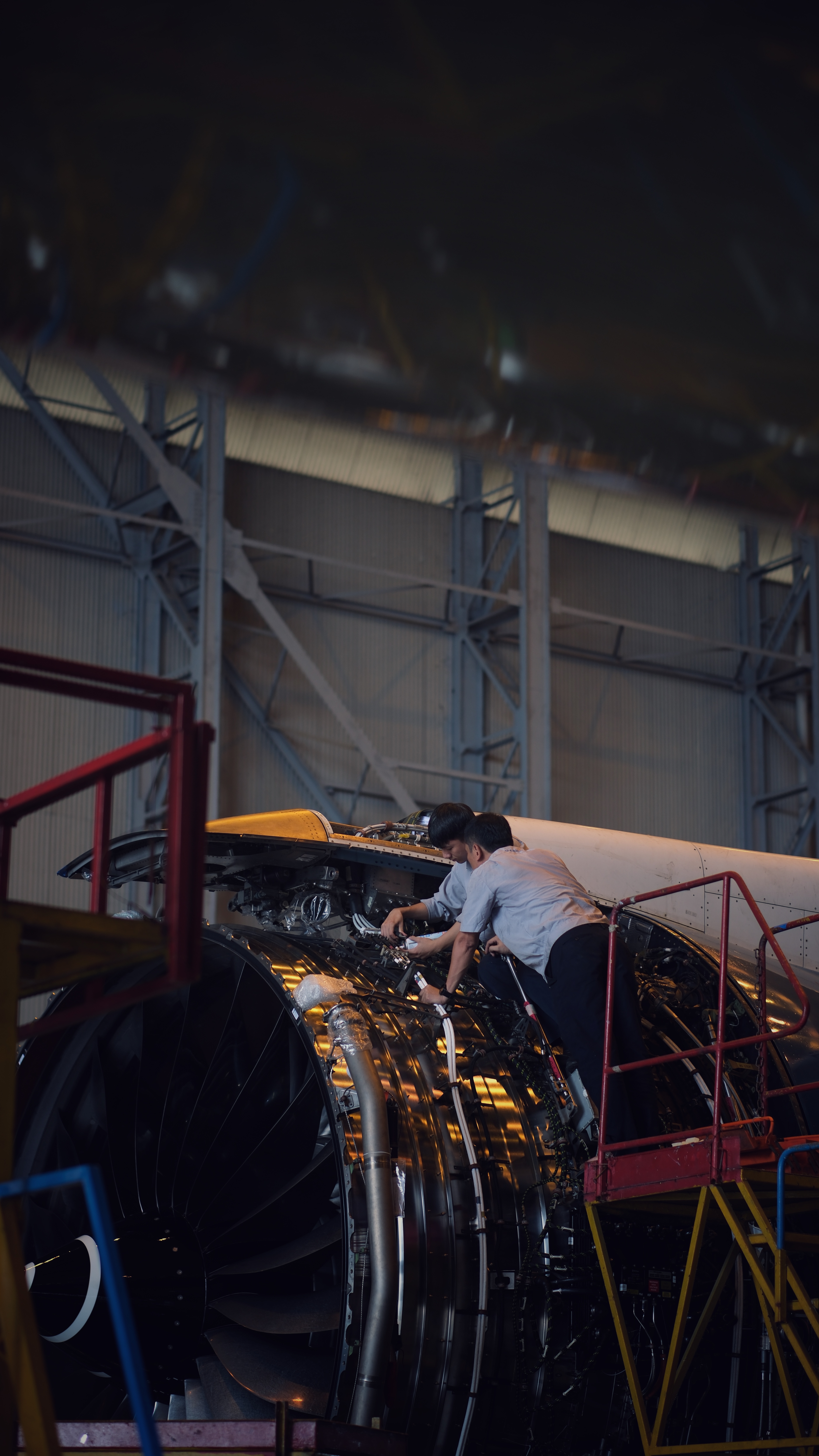 Bức ảnh này ghi lại sự tận tâm và cẩn trọng tuyệt đối của những người kỹ sư, khi họ dành hết tâm huyết để chăm chút từng bộ phận, đảm bảo rằng mỗi chuyến bay không chỉ đáp ứng tiêu chuẩn, mà còn mang lại sự an tâm tuyệt đối cho hành khách.
