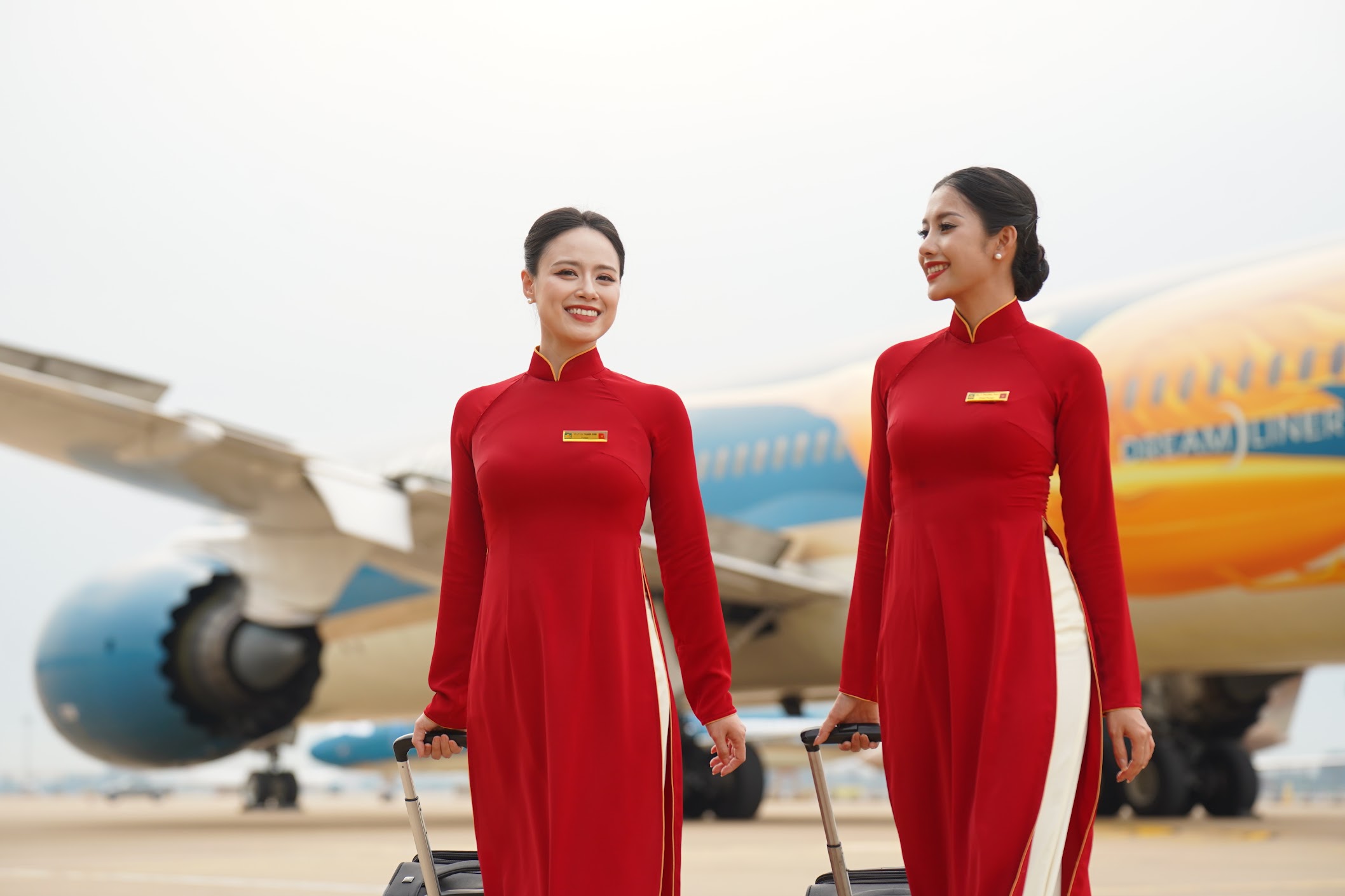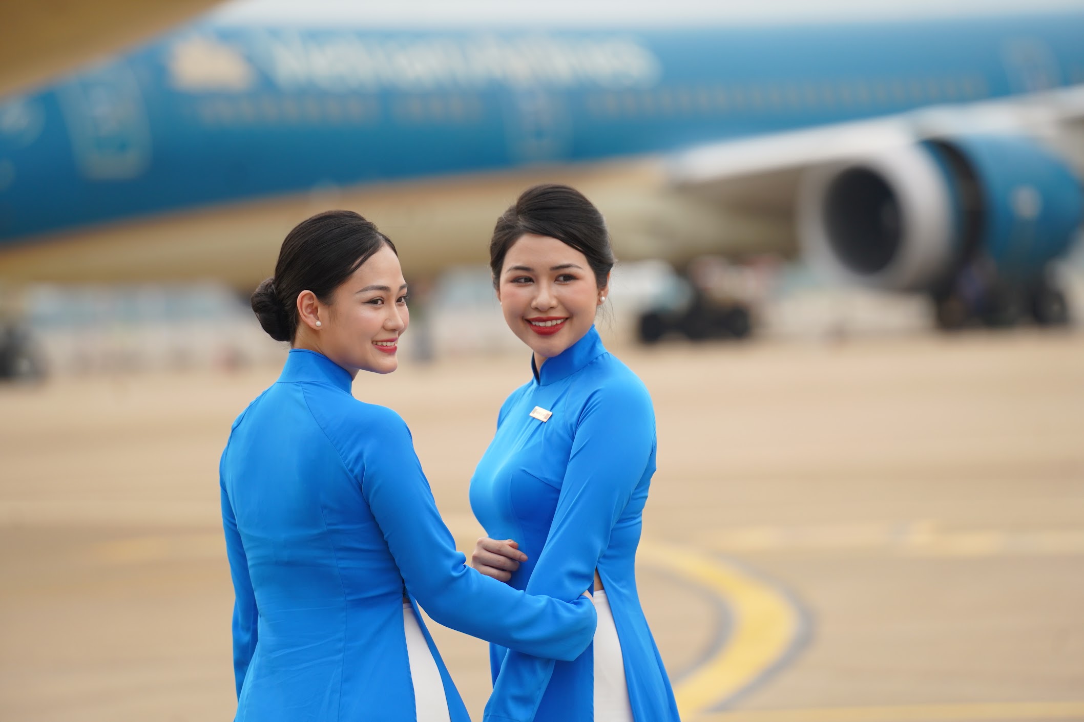 Kể từ năm 2021, đồng phục áo dài của Vietnam Airlines kết hợp màu xanh và vàng, màu sắc được phân chia theo vị trí và cấp bậc của từng người. Cụ thể, đối với vị trí tiếp viên phục vụ khoang thương gia sẽ có màu vàng, vị trí tiếp viên khoang phổ thông có đồng phục màu xanh ngọc.