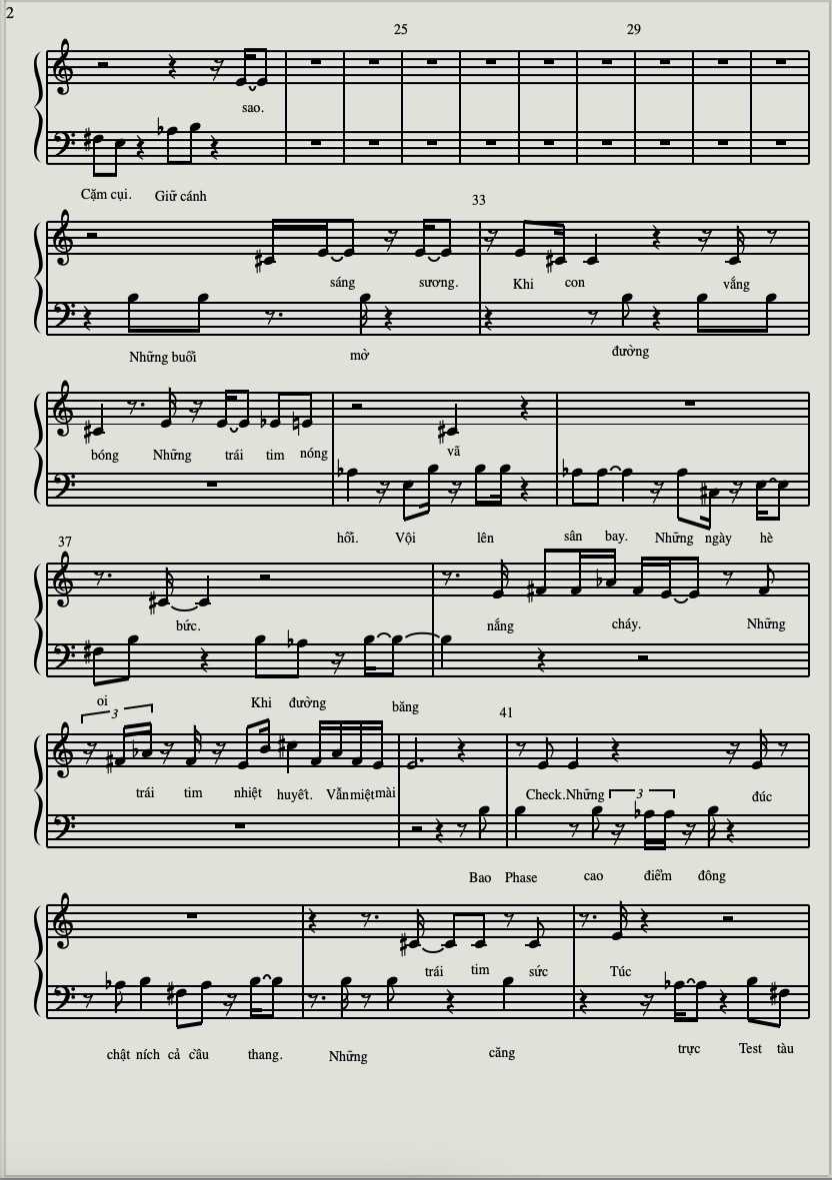 Bài hát với tiết tấu hành khúc như một bản “quốc ca sân bay” –nơi trái tim rực lửa hòa cùng nắng gắt và những bước chân hối hả trên đường băng. Giai điệu lúc gấp gáp tranh thủ từng giây phút trong công việc bảo dưỡng kỹ thuật, lúc lại lãng mạn với hình ảnh máy bay cất cánh an toàn lên bầu trời.