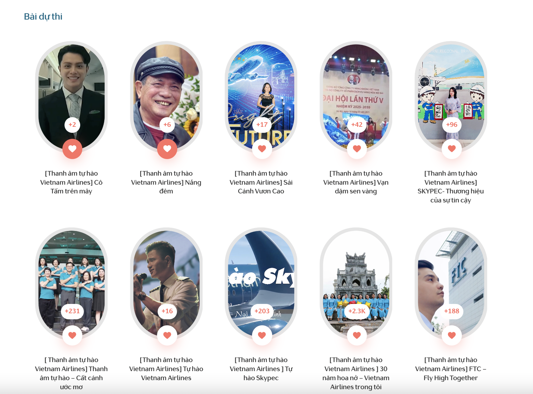 Chúng tôi rất tự hào khi đã nhận được vô số bài hát tuyệt vời, mỗi tác phẩm là một câu chuyện đầy cảm xúc, thể hiện tình yêu với Vietnam Airlines.