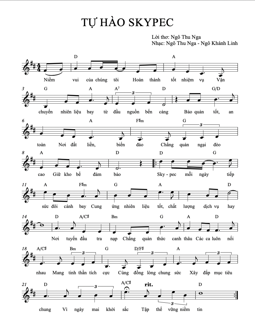 Ca khúc “Tự hào Skypec” như lời tri ân gửi tới những con người không quản nắng mưa, ngày đêm tận tụy với công việc, giữ cho dòng chảy nhiên liệu được thông suốt đến với từng chuyến bay.