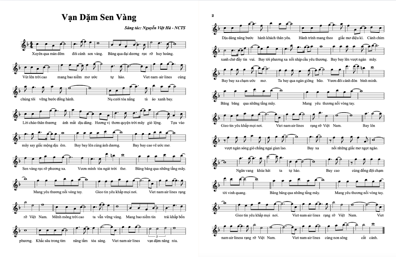 “Vạn Dặm Sen Vàng” là ca khúc thứ hai tôi sáng tác, sau bài hát riêng dành tặng NCTS. Nhưng lần này, cảm xúc trong tôi được thăng hoa theo một cách rất khác – bay bổng hơn, rộng mở hơn, như khát vọng được đồng hành cùng Vietnam Airlines cất cánh cùng non sông, bước vào kỷ nguyên mới – rạng rỡ và mạnh mẽ hơn bao giờ hết.