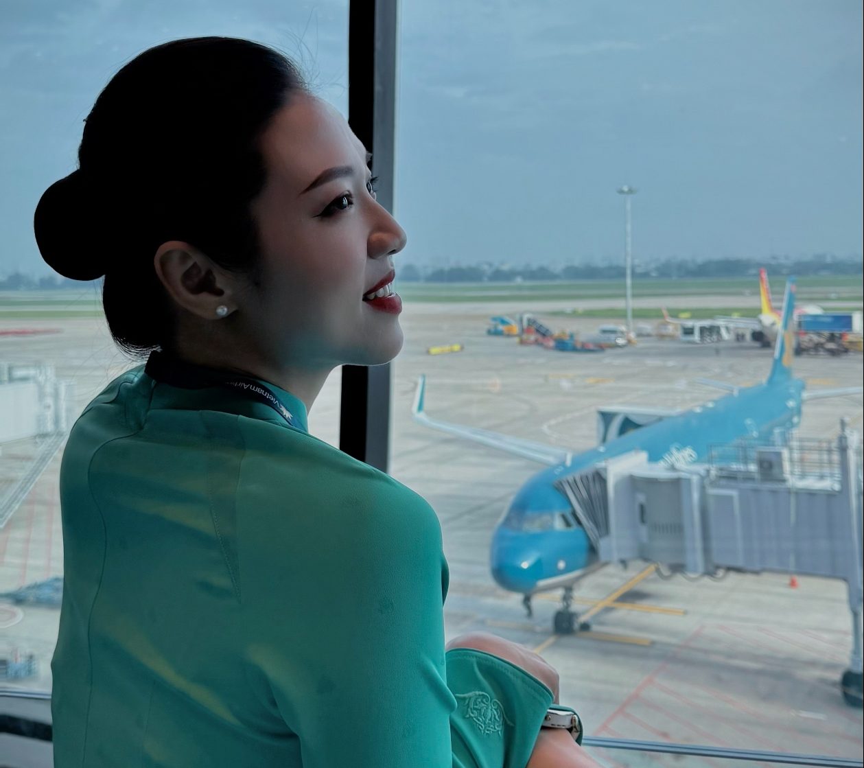 Mẹ đến với nghề Tiếp viên Hàng không là một cơ duyên, bắt nguồn từ đam mê cháy bỏng từ ngày còn học phổ thông. Mỗi lần ngắm các chị Tiếp viên hàng không trong tà áo dài, kéo va ly, sải bước ở sân bay là cứ nhìn theo mải miết. Ước mơ ấy lớn dần, gác lại tất cả – mẹ một lần nữa thi tuyển và trở thành Tiếp viên của hãng Hàng không Quốc gia Việt Nam Arlines ở độ tuổi 30. Mẹ được khoác trên mình bộ áo dài màu ngọc bích, được bay đến mọi miền Tổ quốc, nhiều nơi trên thế giới mới cảm thấy hết niềm tự hào của người Việt Nam.