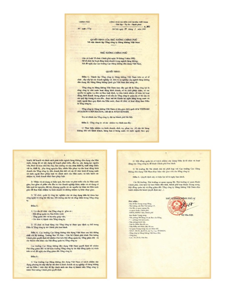 Đến ngày 20/4/1993, Hãng Hàng không Quốc gia Việt Nam (Vietnam Airlines) chính thức ra đời trên cơ sở nòng cốt là Đoàn bay 919, Đoàn tiếp viên và các xí nghiệp bảo dưỡng máy bay, dịch vụ mặt đất, suất ăn trên không. Tiếp đó, ngày 27/5/1995, Tổng công ty Hàng không Việt Nam chính thức được thành lập. Hai sự kiện này là những dấu mốc lịch sử cho một giai đoạn phát triển đặc biệt của Tổng công ty Hàng không Việt Nam, giai đoạn chuyển mình cất cánh, vươn cao.