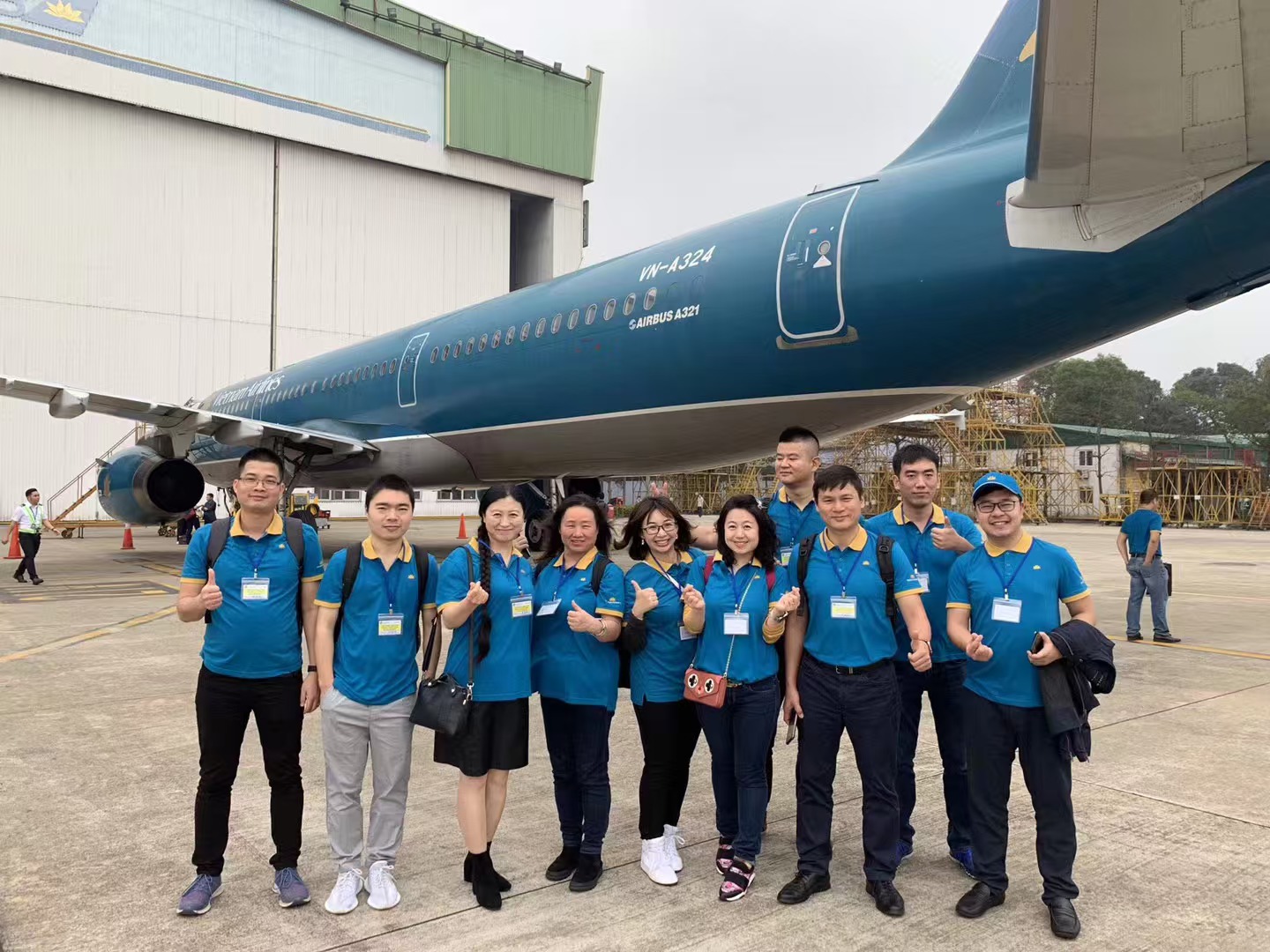 2019 年 2 月,我有幸赴越南河内(下龙湾)参加越南航空全球 Sales Day 活动并参观了 VAECO。当我第一次走进宽阔空旷的厂房近距离观赏飞机,了解飞机的保养和维修知识时,内心受到了极大的震撼。那些精密的设备、专业的技术人员,无不彰显着越航强大的实力与专业精神。原来每一架平安起降的航班背后都凝结着无数越航人静默如山的守护。那一刻,我更加深刻地体会到作为民航人的骄傲,尤其为自己能成为越航这个优秀团队中的一员而感到荣幸。