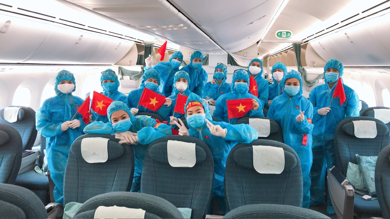 Trên chuyến bay giải cứu giữa tâm dịch, chúng tôi không chỉ mang theo quốc kỳ, mà còn mang theo lòng dũng cảm và tinh thần “không ai bị bỏ lại phía sau”. (Ảnh: NVCC)