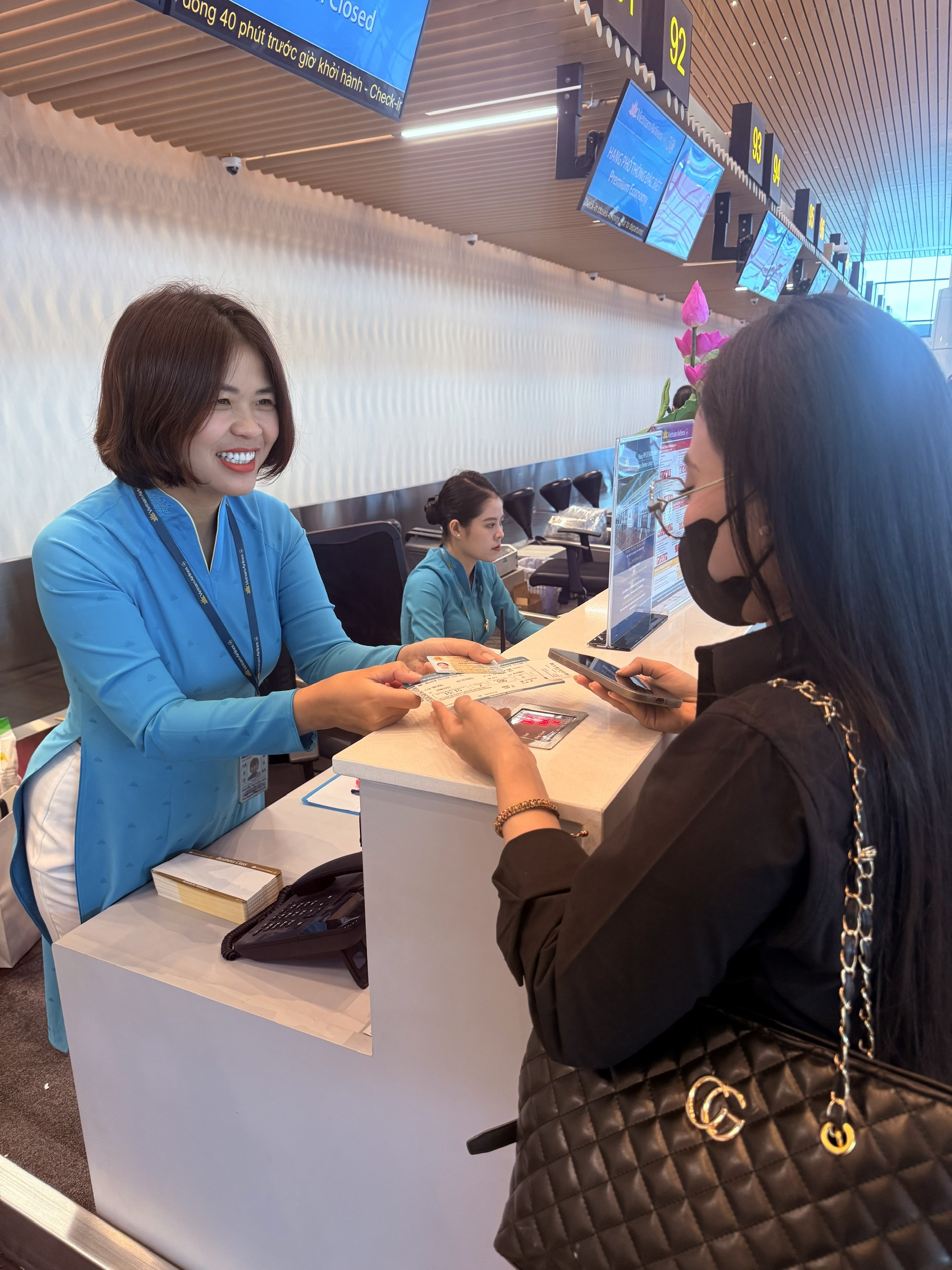 Không cần đi đâu xa, tôi đã tìm thấy con đường của riêng mình. Và tôi vẫn đang đi trên con đường đó, suốt gần hai thập kỷ. Giờ đây, tôi là một nhân viên đại diện Vietnam Airlines tại sân bay. Tôi không còn là người chỉ đứng nhìn máy bay từ xa, mà là người đồng hành cùng từng chuyến bay – từ lúc hành khách làm thủ tục, đến khi họ an toàn lên khoang. Tôi có mặt tại quầy check-in từ sớm tinh mơ, khi sân bay còn mờ sương. Tôi đứng giữa nắng mưa ngoài sân đỗ, đón máy bay vừa hạ cánh. Tôi tất bật giữa những chuyến bay trễ, hành khách vội vã, những câu hỏi liên tục, những tình huống cần xử lý nhanh, đúng và đủ tình người.