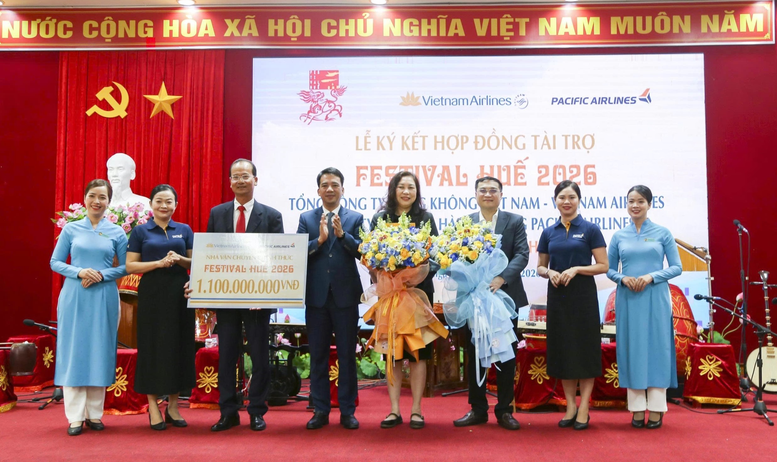 Đồng hành cùng Festival Huế 2026, Vietnam Airlines và Pacific Airlines sẽ hỗ trợ công tác vận chuyển cho các đoàn nghệ thuật quốc tế, đại biểu, khách mời và lực lượng tham gia các hoạt động trong khuôn khổ Festival. Hai hãng hàng không cũng phối hợp với Ban tổ chức triển khai các hoạt động quảng bá nhằm lan tỏa hình ảnh Festival Huế 2026 tới đông đảo công chúng trong nước và quốc tế.