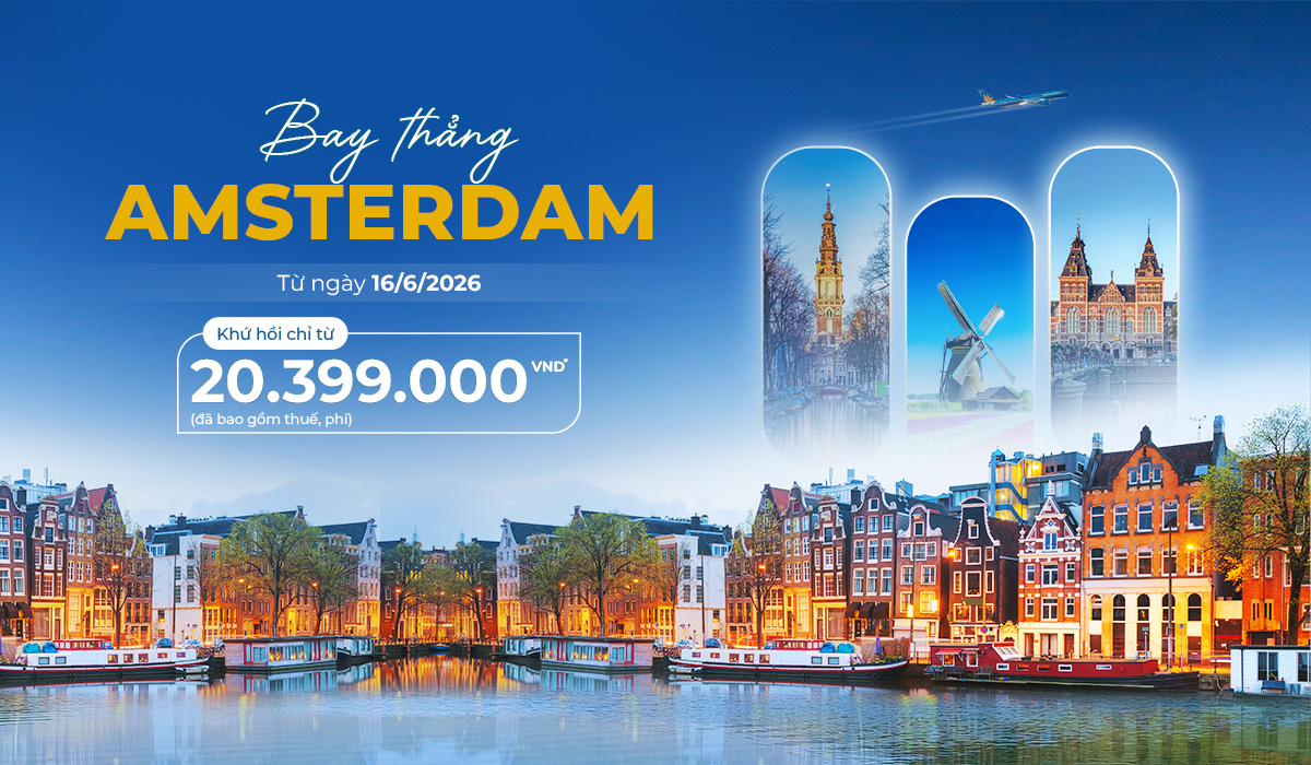 Amsterdam không chỉ là thủ đô của những bảo tàng nghệ thuật lừng danh, mà còn là không gian thăng hoa của sự sáng tạo và nguồn cảm hứng bất tận. Được mệnh danh là “Venice phương Bắc”, thành phố sở hữu mạng lưới kênh đào di sản từ thế kỷ 17 đã vinh dự nhận sự công nhận của UNESCO. Tất cả cùng vẽ nên một khung cảnh thơ mộng hiếm nơi nào có được. Chỉ với mức giá khứ hồi từ 20.399.000 VNĐ (đã bao gồm thuế, phí), bạn đã sở hữu tấm vé thông hành để bắt đầu chuyến chu du giữa lòng Hà Lan rực rỡ.