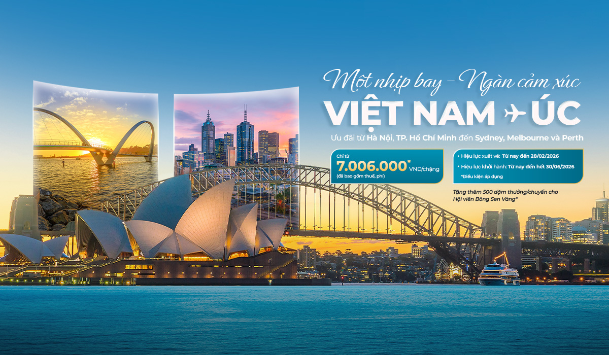 Nước Úc luôn mời gọi những tâm hồn yêu tự do bằng vẻ diễm lệ của nhà hát Opera Sydney, nhịp sống nghệ thuật tại Melbourne hay sự yên bình đầy quyến rũ của thành phố biển Perth. Thay vì lộ trình nối chuyến kéo dài, Vietnam Airlines duy trì các đường bay trực tiếp xuyên đại dương giúp quý khách tối ưu thời gian và dành trọn năng lượng cho những hoạt động khám phá tại điểm đến.