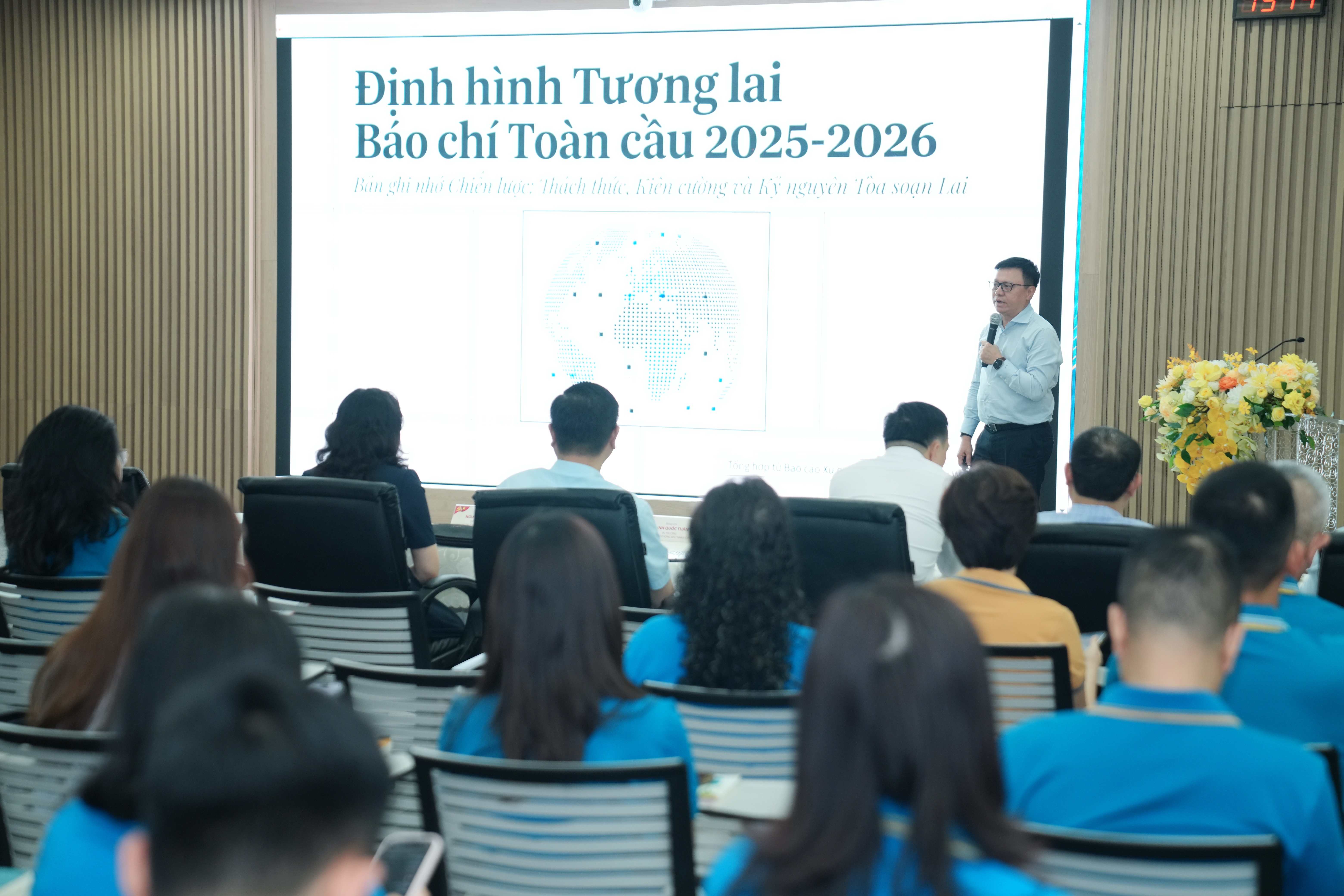 Trong khuôn khổ chương trình, đồng chí Lê Quốc Minh đã mang đến một bức tranh toàn diện về sự chuyển dịch của báo chí và truyền thông toàn cầu trong kỷ nguyên số, nơi công nghệ, dữ liệu lớn và trí tuệ nhân tạo đang làm thay đổi sâu sắc cách thức sản xuất, phân phối và tiếp nhận thông tin.
