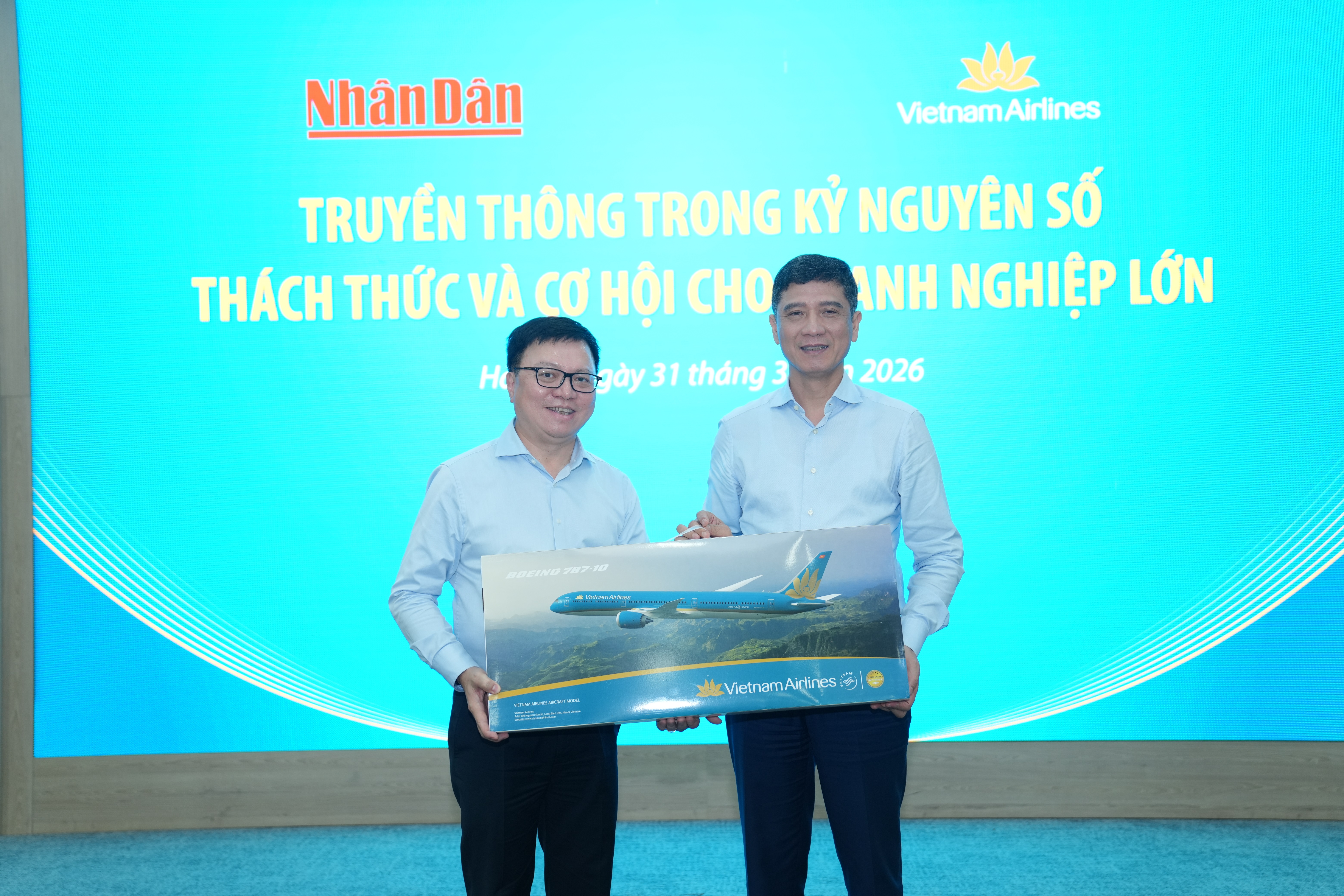 Không chỉ dừng lại ở góc độ chuyên môn, buổi sinh hoạt chuyên đề còn khẳng định truyền thông là trách nhiệm chung của toàn hệ thống, trong đó mỗi cán bộ, đảng viên và người lao động đều góp phần lan tỏa hình ảnh Vietnam Airlines thông qua ý thức trách nhiệm, kỷ luật phát ngôn và sự chủ động thích ứng với môi trường truyền thông mới. Kết thúc chương trình, thay mặt lãnh đạo Tổng công ty, đồng chí Tạ Mạnh Hùng – Phó Bí thư Thường trực Đảng ủy, Thành viên Hội đồng quản trị Tổng công ty đã trao tặng mô hình máy bay Vietnam Airlines tới đồng chí Lê Quốc Minh đại diện Báo Nhân Dân như một biểu tượng cho sự đồng hành và gắn kết bền chặt giữa hai đơn vị.