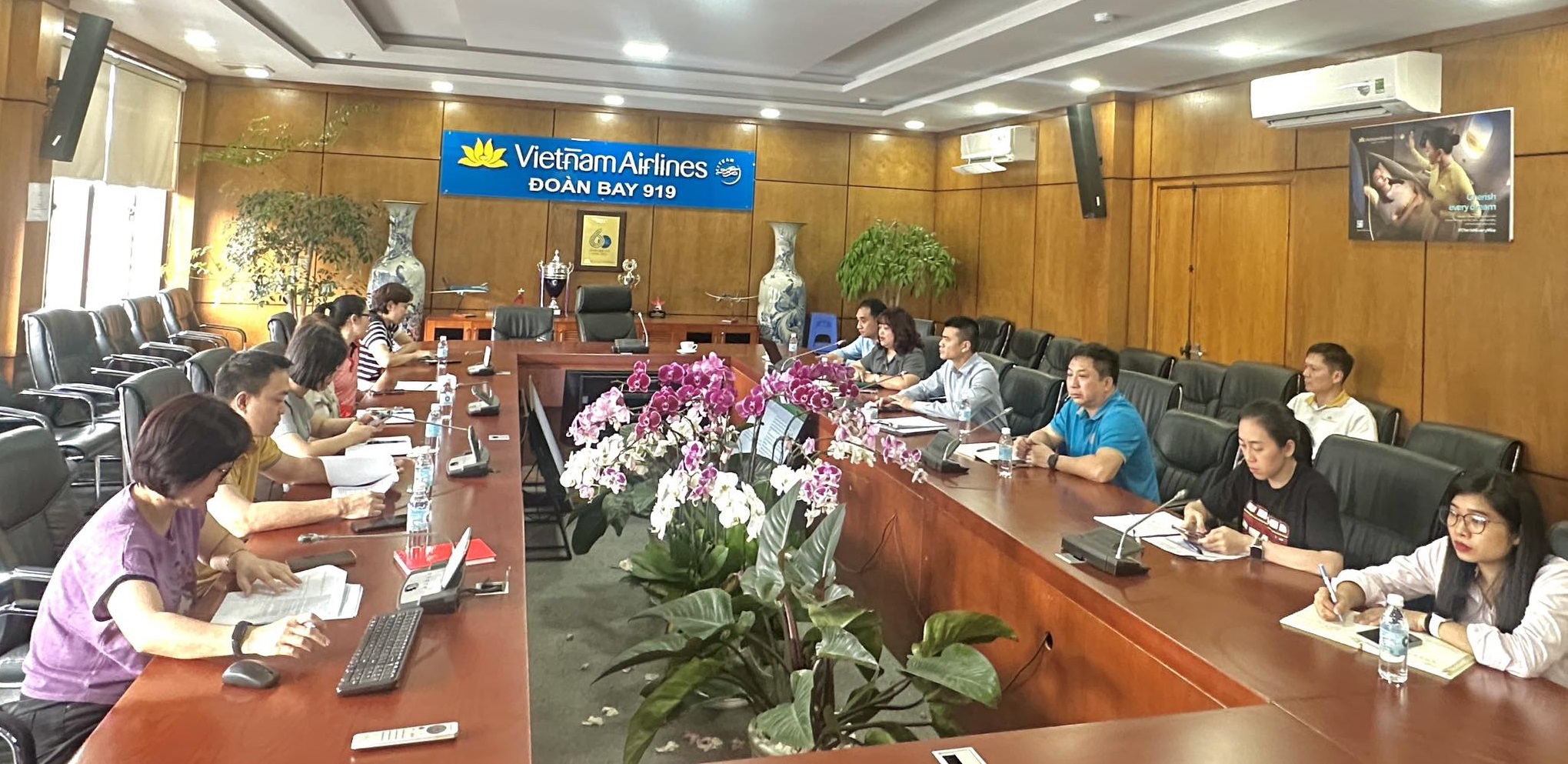 Tham dự Hội nghị về phía đại diện người sử dụng lao động có ông Tô Ngọc Giang – Phó Tổng Giám đốc TCT, Đoàn trưởng cùng Ban lãnh đạo Đoàn bay 919, các cán bộ quản lý đại diện các phòng chuyên môn, nghiệp vụ và các đội bay.