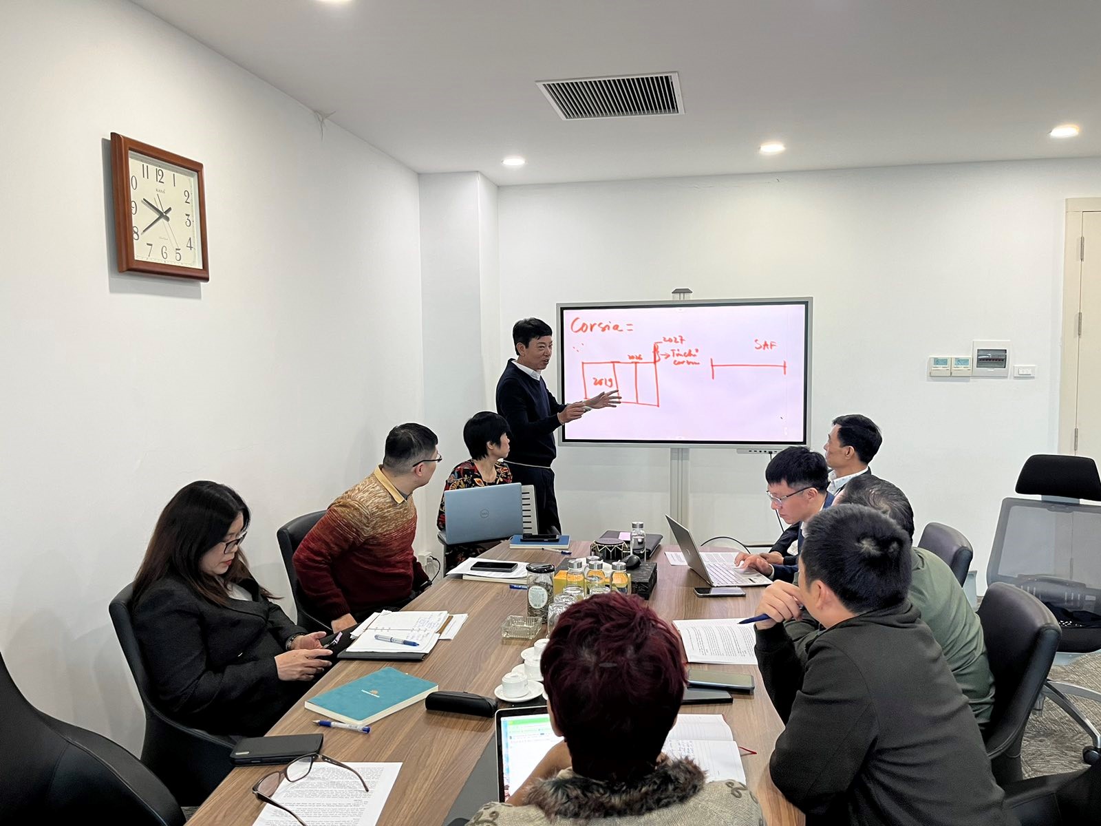 Buổi làm việc được tổ chức trong khuôn khổ hoạt động tuyên truyền trên Báo Đảng về các chính sách, cam kết khí hậu và nỗ lực chuẩn bị của doanh nghiệp trước những yêu cầu mới. Tại đây, P.TGĐ Đinh Văn Tuấn – Phó Trưởng ban thường trực BĐH PTBV và các thành viên thuộc Tổ Thư ký, BĐH PTBV đã chia sẻ cụ thể về mức độ sẵn sàng của Hãng trong việc triển khai CORSIA cũng như các giải pháp giảm phát thải đang được thực hiện.