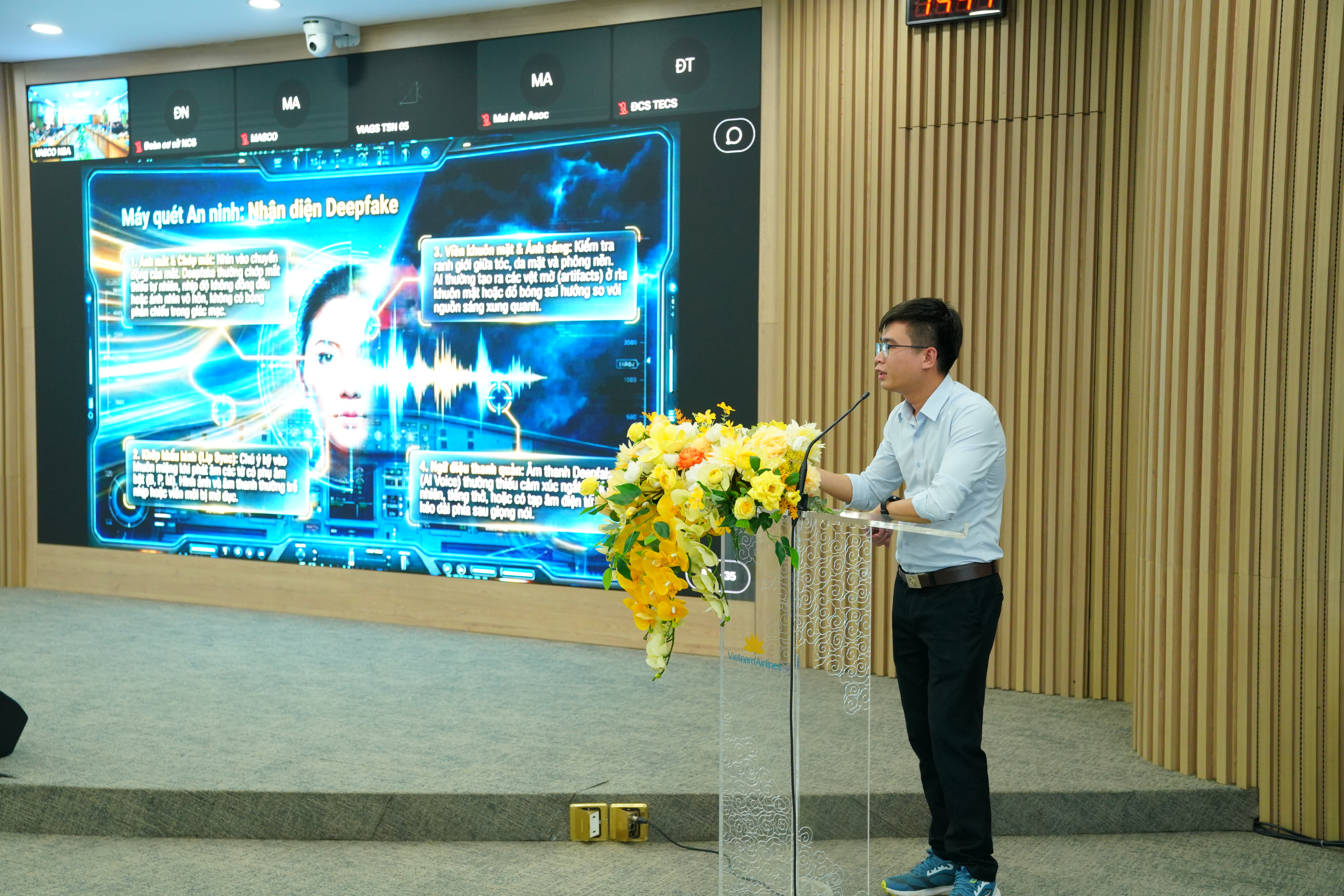 Chương trình được tổ chức kết hợp trực tiếp và trực tuyến, với điểm cầu chính tại Hội trường Hoa Sen – VN1, đồng thời kết nối tới các cơ sở Đoàn trực thuộc thông qua nền tảng Webex. Buổi tập huấn đã thu hút gần 400 đoàn viên thanh niên tham gia tại 40 điểm cầu, thể hiện sự quan tâm và tinh thần chủ động của tuổi trẻ Vietnam Airlines đối với công tác chuyển đổi số.