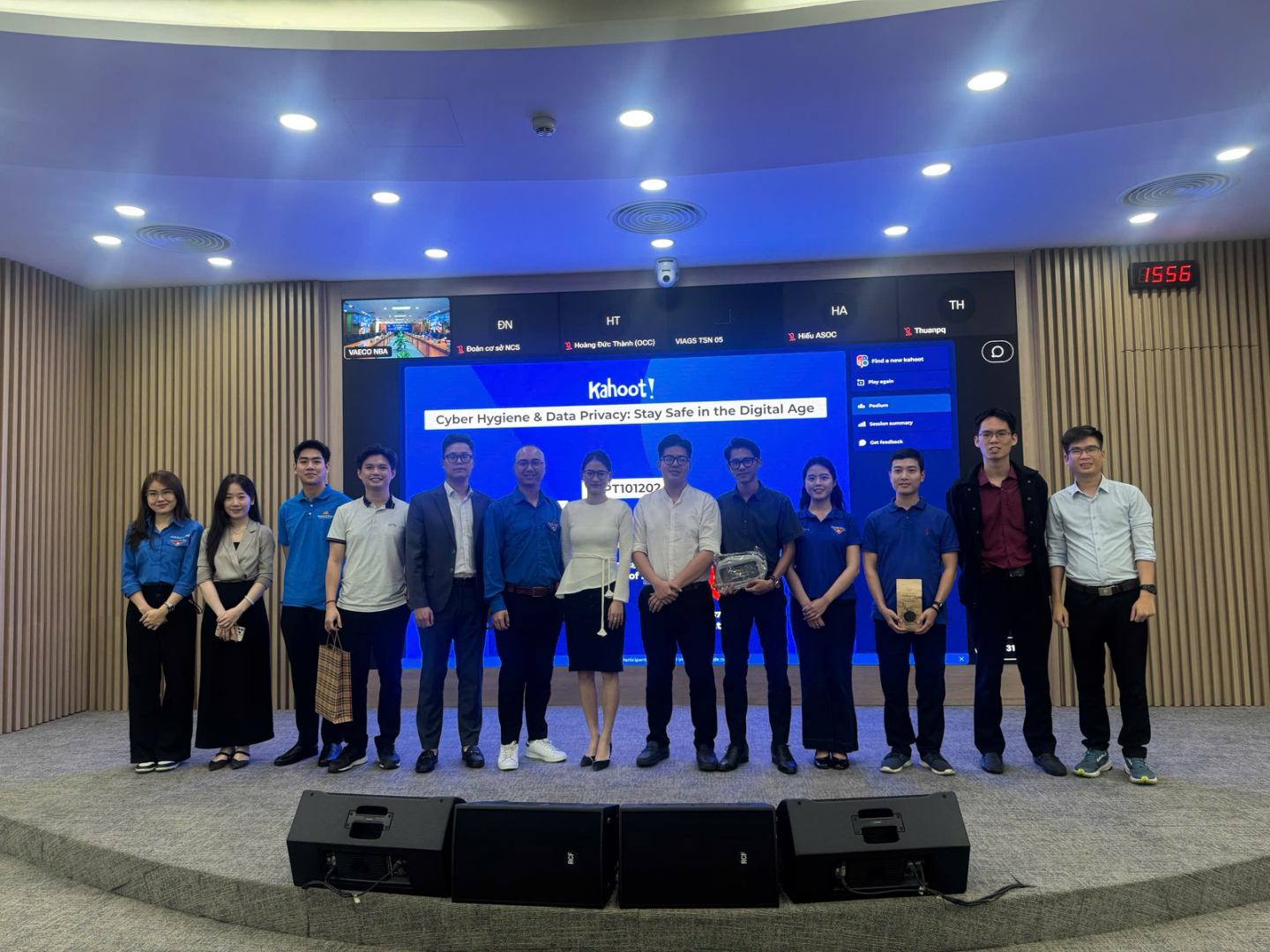 Bên cạnh nội dung chuyên môn, chương trình còn tổ chức minigame tương tác giữa 3 đội chơi với các câu hỏi xoay quanh kiến thức về an ninh thông tin, bảo mật dữ liệu và các nội dung được chia sẻ trong buổi tập huấn. Phần thi diễn ra trong không khí sôi nổi, nhận được sự cổ vũ nhiệt tình của các đoàn viên tại điểm cầu trực tiếp cũng như trực tuyến. Các đội chơi đã thể hiện sự nhanh nhạy, hiểu biết về chuyển đổi số và mang đến nhiều khoảnh khắc hào hứng, góp phần tạo nên không khí giao lưu, học hỏi tích cực trong chương trình.