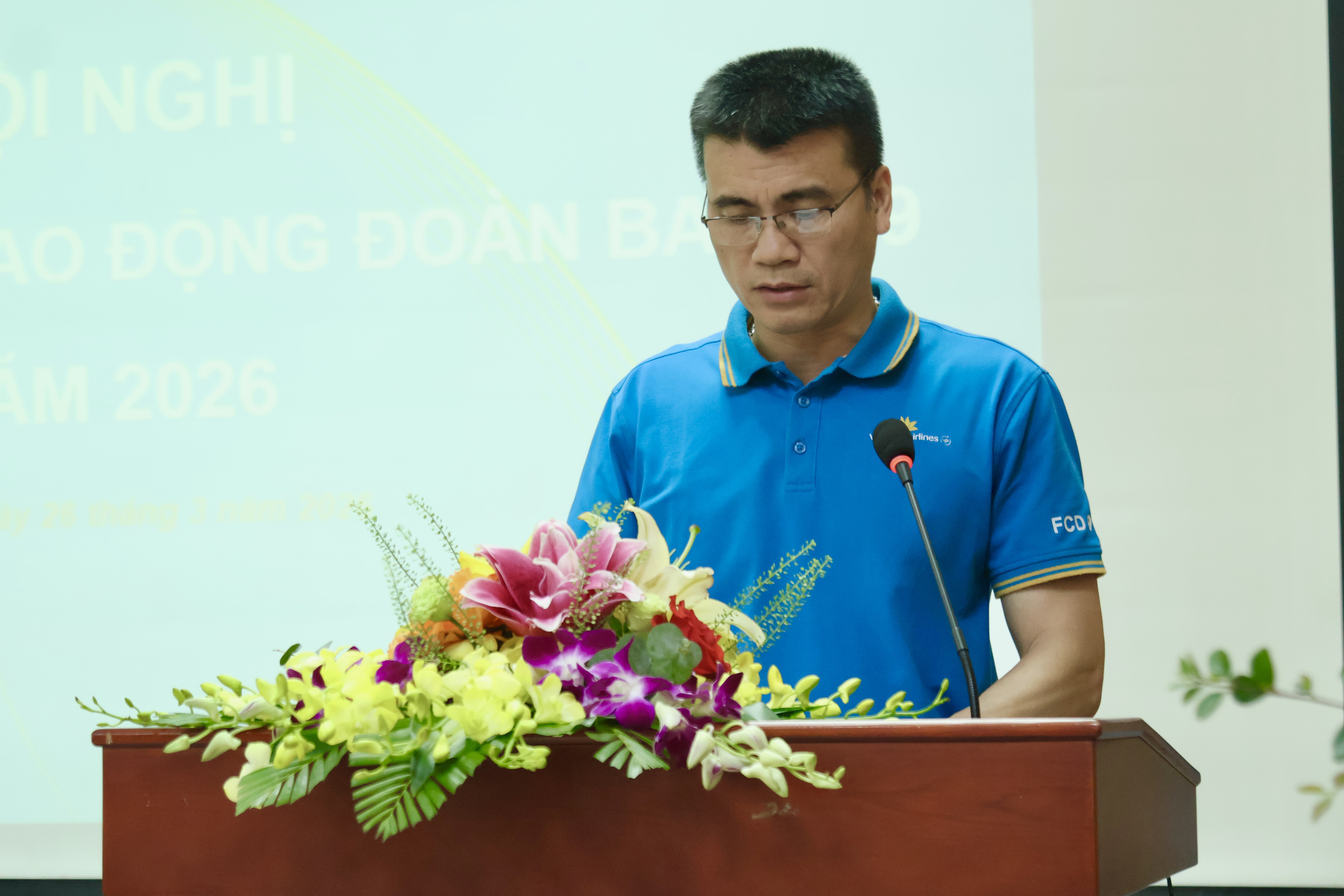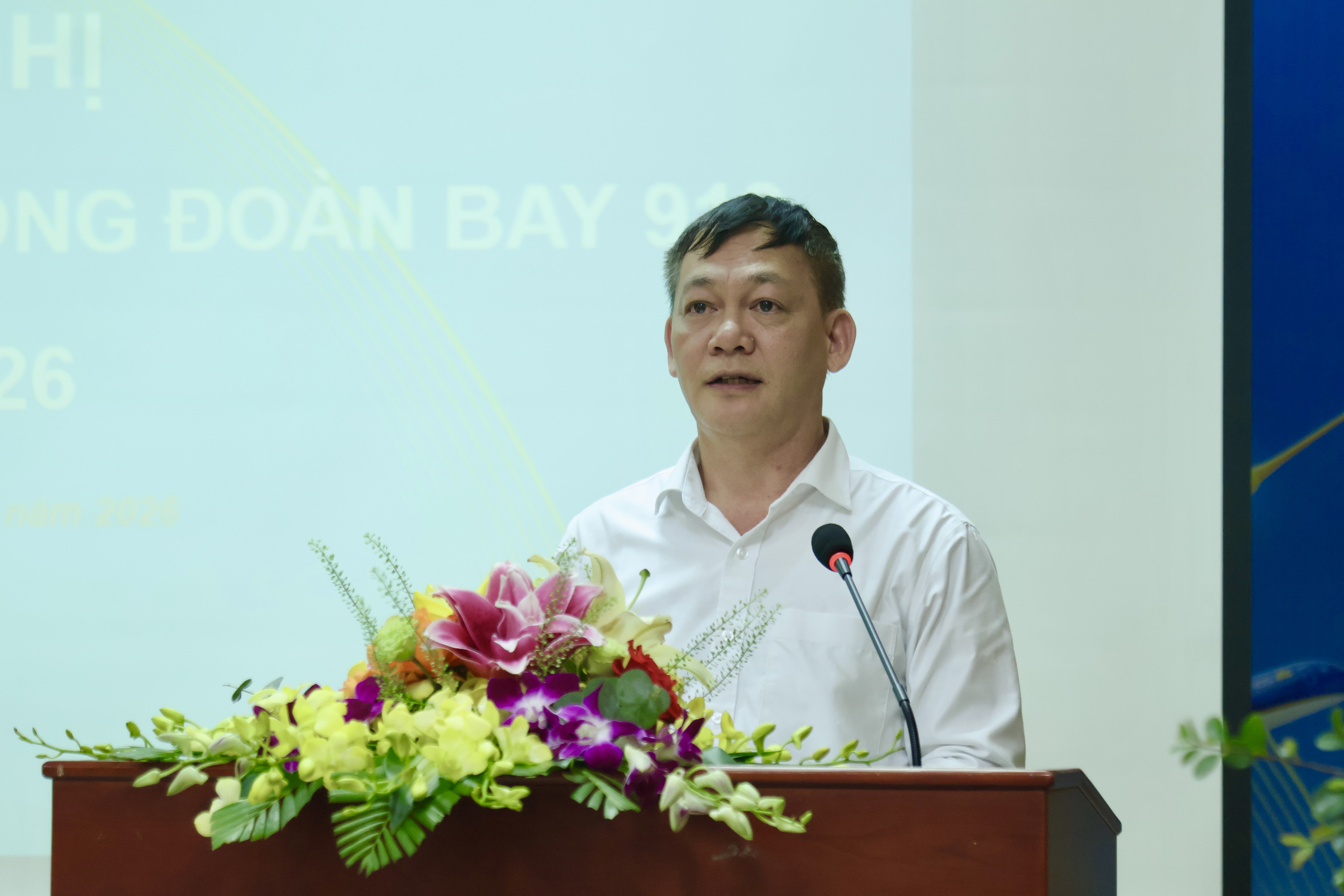 Thay mặt BCH Công đoàn Đoàn bay, Chủ tịch Công đoàn cơ sở Nguyễn Hải Anh trình bày báo cáo của BCH Công đoàn đánh giá tình hình tổ chức Hội nghị Người lao động tại các đơn vị; Kết quả kiểm tra, giám sát tình hình thực hiện HĐLĐ, Thỏa ước lao động tập thể và Nội quy lao động; Kết quả đối thoại định kỳ năm 2025, phương hướng đối thoại năm 2026; đồng thời cũng nêu một số ý kiến, kiến nghị của người lao động về chế độ chính sách và các giải pháp trong hoạt động của Đoàn bay 919.