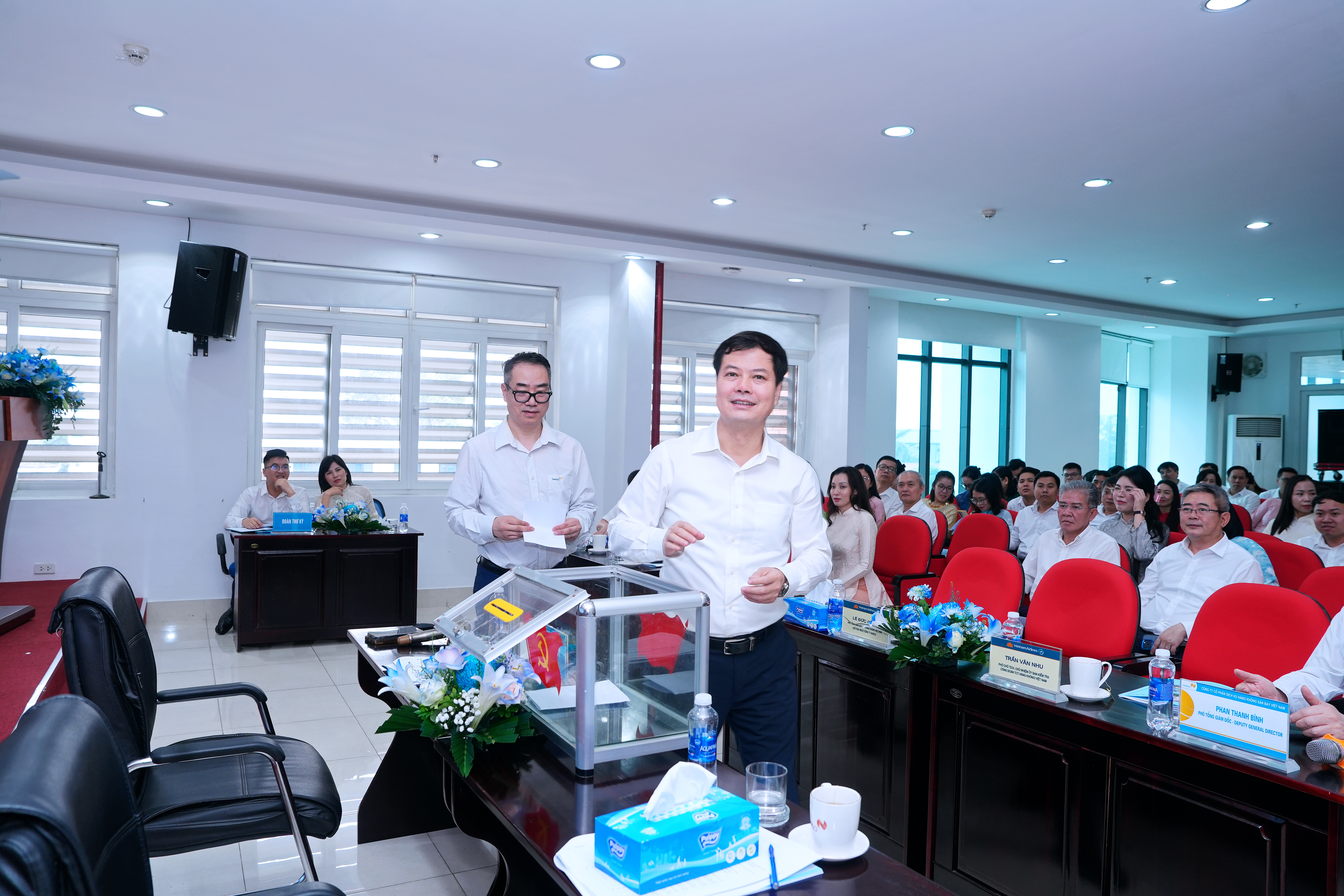 Tham dự hội nghị, về phía Tổng Công ty Hàng không Việt Nam (VNA) có: Ông Lê Đức Cảnh – Phó Tổng Giám đốc VNA, Chủ tịch Hội đồng quản trị NASCO Ông Trần Văn Nhu – Phó Chủ tịch Công đoàn, Chủ nhiệm Ủy ban Kiểm tra Công đoàn VNA. Về phía NASCO có: Ông Bùi Đức Thanh – Bí thư Đảng ủy, Tổng Giám đốc Công ty Ông Phan Thanh Bình – Phó Bí thư Đảng ủy, Phó Tổng Giám đốc, Chủ tịch Công đoàn NASCO và cùng với140 đại biểu đương nhiên và đại biểu được bầu từ các hội nghị cấp đơn vị.