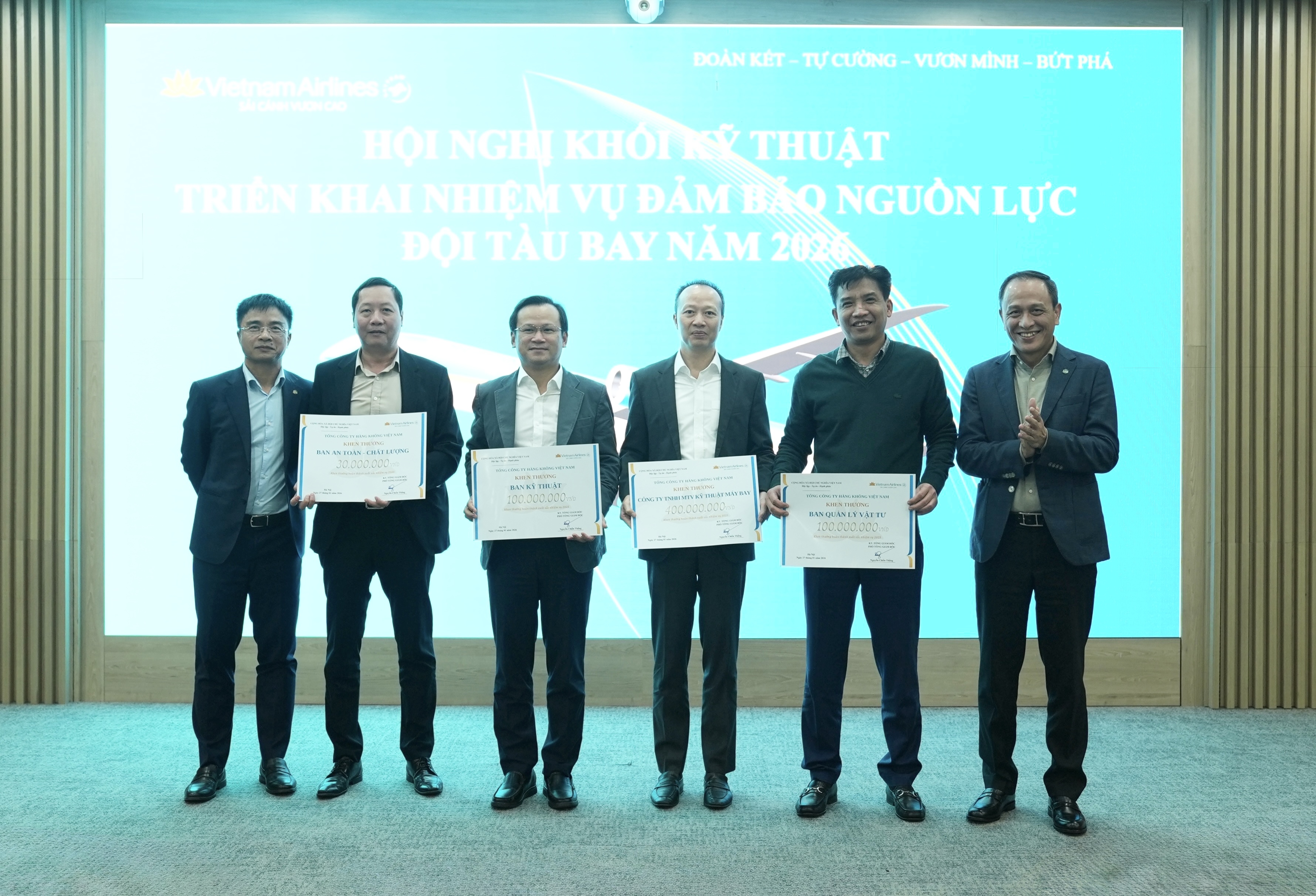 Kết luận Hội nghị, Phó Tổng Giám đốc Nguyễn Chiến Thắng, Giám đốc Khối Kỹ thuật khẳng định mục tiêu xuyên suốt năm 2026 là bảo đảm nguồn lực đội tàu bay sẵn có, nâng cao độ tin cậy thiết bị, giảm AOG, hạn chế tối đa dừng tàu, đồng thời triển khai đồng bộ các giải pháp quản lý vật tư. Khối Kỹ thuật cam kết triển khai quyết liệt các nhiệm vụ theo đúng tinh thần “vươn mình, bứt phá” của TCT, góp phần hoàn thành kế hoạch SXKD và nâng cao chỉ số OTP của toàn hệ thống khai thác.