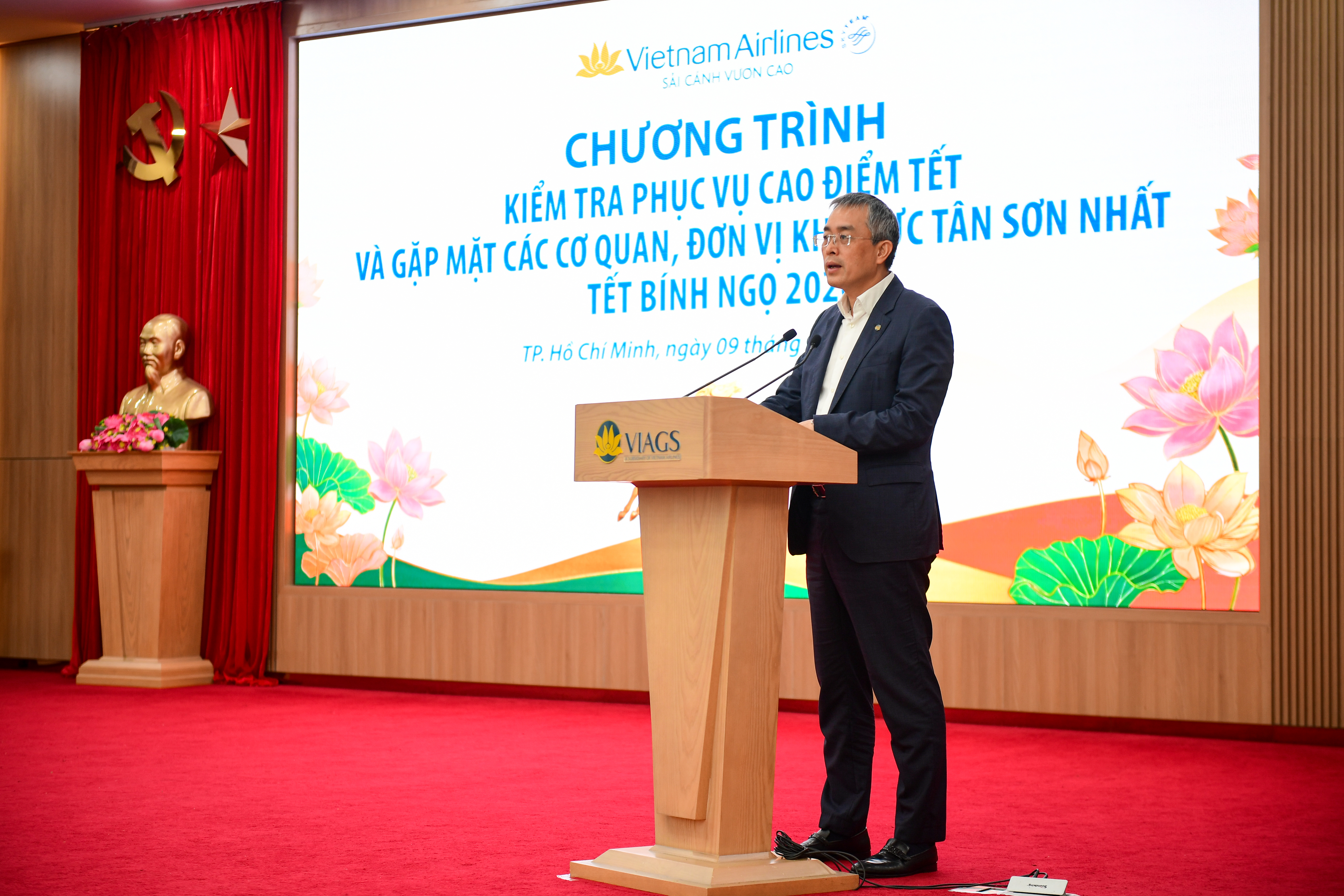 Phát biểu tại buổi làm việc, Chủ tịch HĐQT Đặng Ngọc Hoà ghi nhận sự chuẩn bị kỹ lưỡng của các đơn vị, đồng thời nhấn mạnh: “Trong giai đoạn cao điểm Tết, mục tiêu cao nhất của Vietnam Airlines là bảo đảm an ninh, và an toàn tuyệt đối. Bên cạnh đó, chất lượng phải đảm bảo trọng thị, chu đáo.”