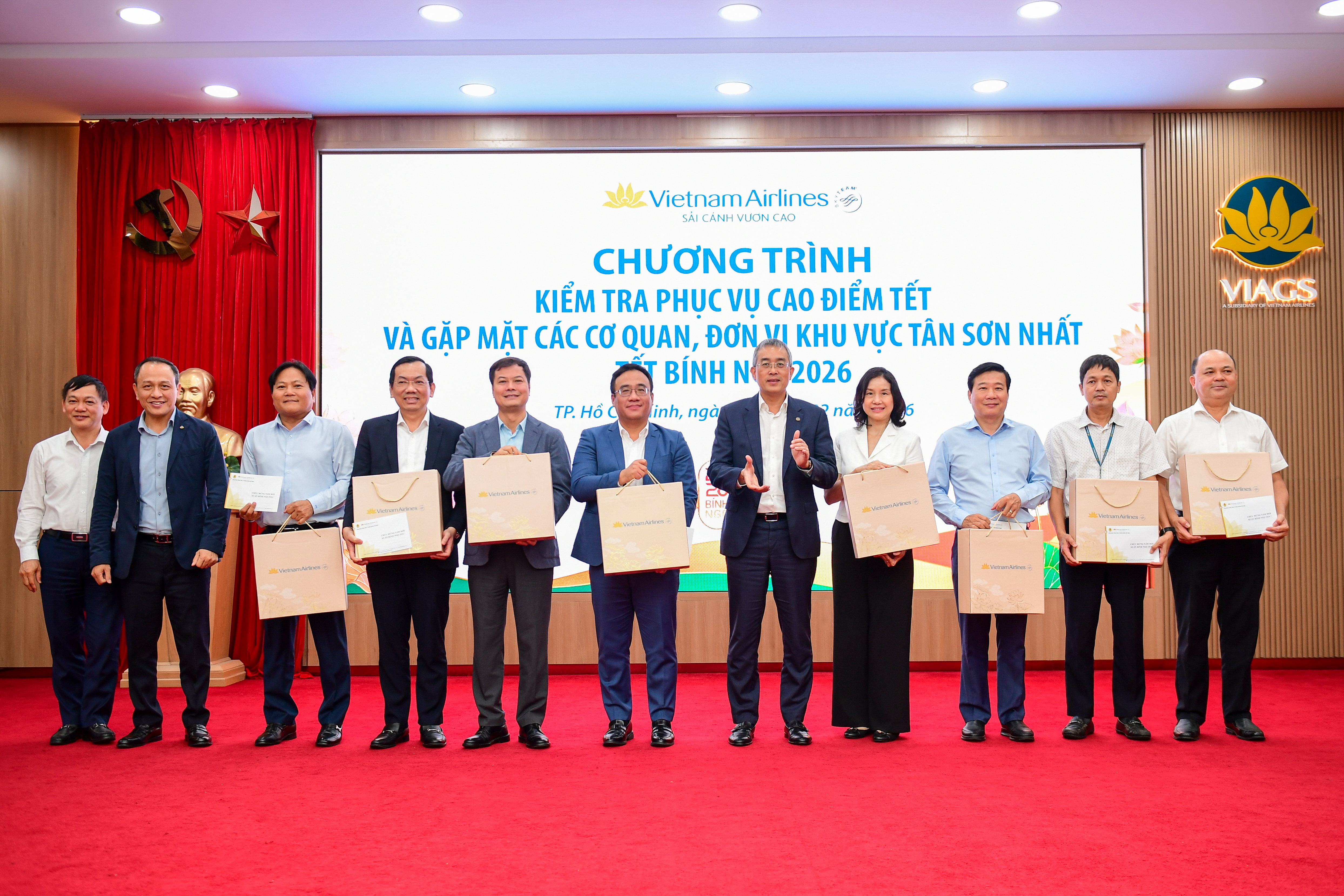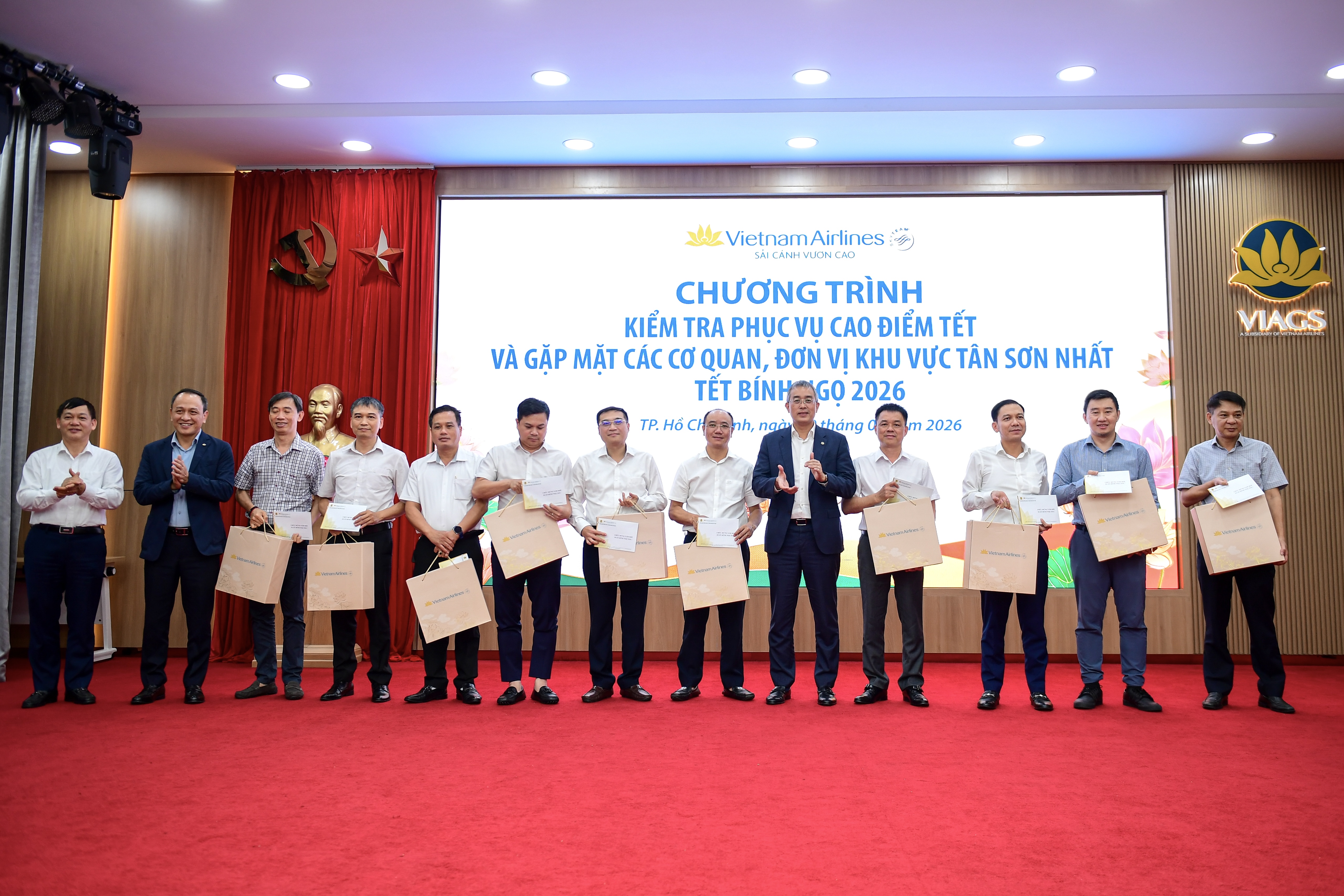 Trước thềm Tết Bính Ngọ, thay mặt lãnh đạo TCT, Chủ tịch HĐQT Đặng Ngọc Hòa đã gửi lời chúc sức khỏe và thành công đến các đơn vị, đồng thời trao tặng những phần quà Tết ý nghĩa cho đại diện lãnh đạo các cơ quan, công ty thành viên tại các khu vực Tân Sơn Nhất. Những món quà này không chỉ thể hiện sự tri ân sâu sắc mà còn khẳng định cam kết của TCT đối với việc xây dựng môi trường làm việc gắn kết, sẻ chia trong suốt năm qua.