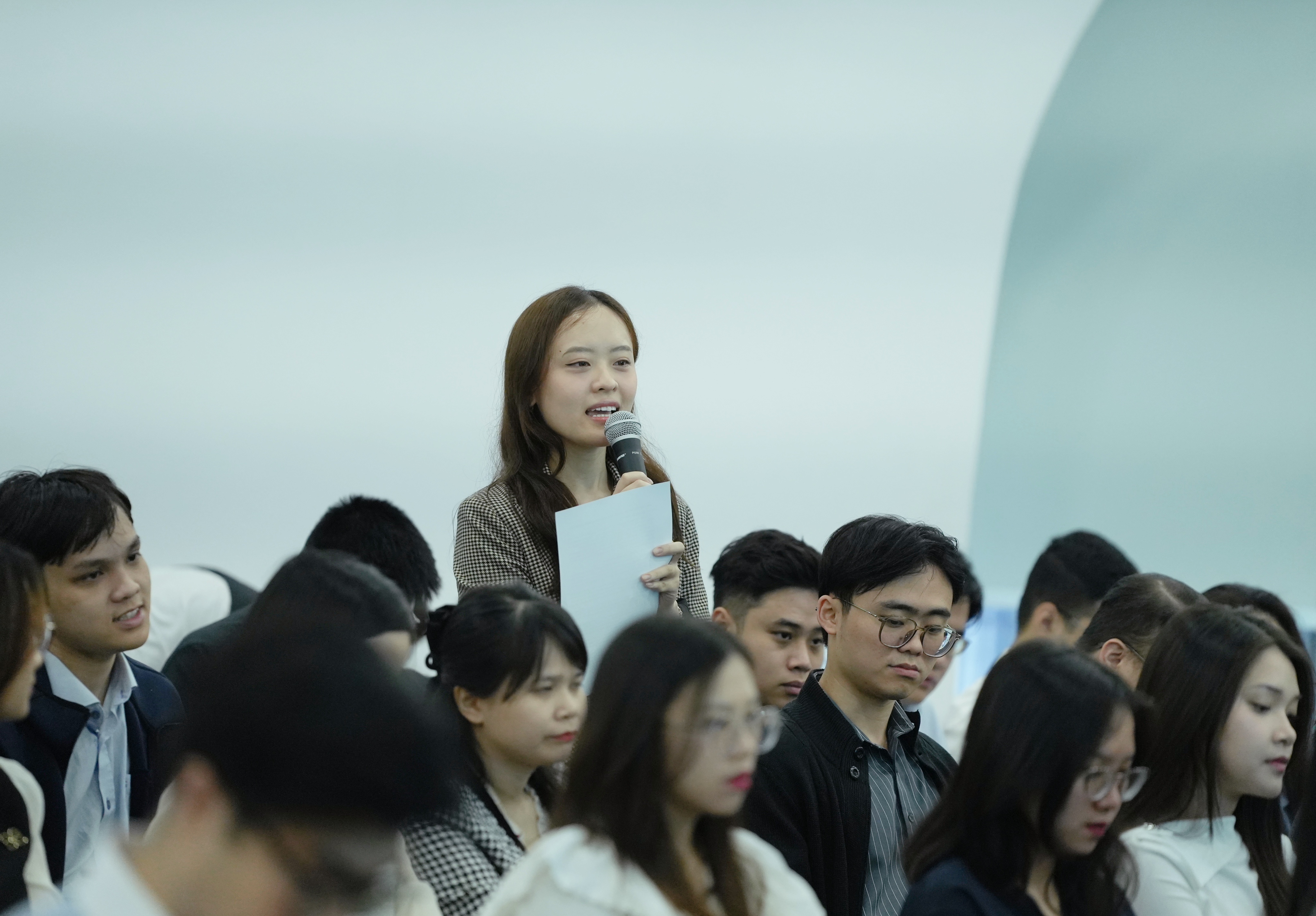 Tại buổi học, các học viên đã chủ động đặt ra những câu hỏi mang tính thực tiễn cao, phản ánh trách nhiệm và tâm thế sẵn sàng gia nhập môi trường hàng không chuyên nghiệp. Các câu hỏi xoay quanh ba nhóm vấn đề chính: văn hóa và kinh nghiệm làm việc; tầm nhìn chiến lược và vai trò của thế hệ trẻ; những thách thức của ngành hàng không trong bối cảnh biến động toàn cầu.