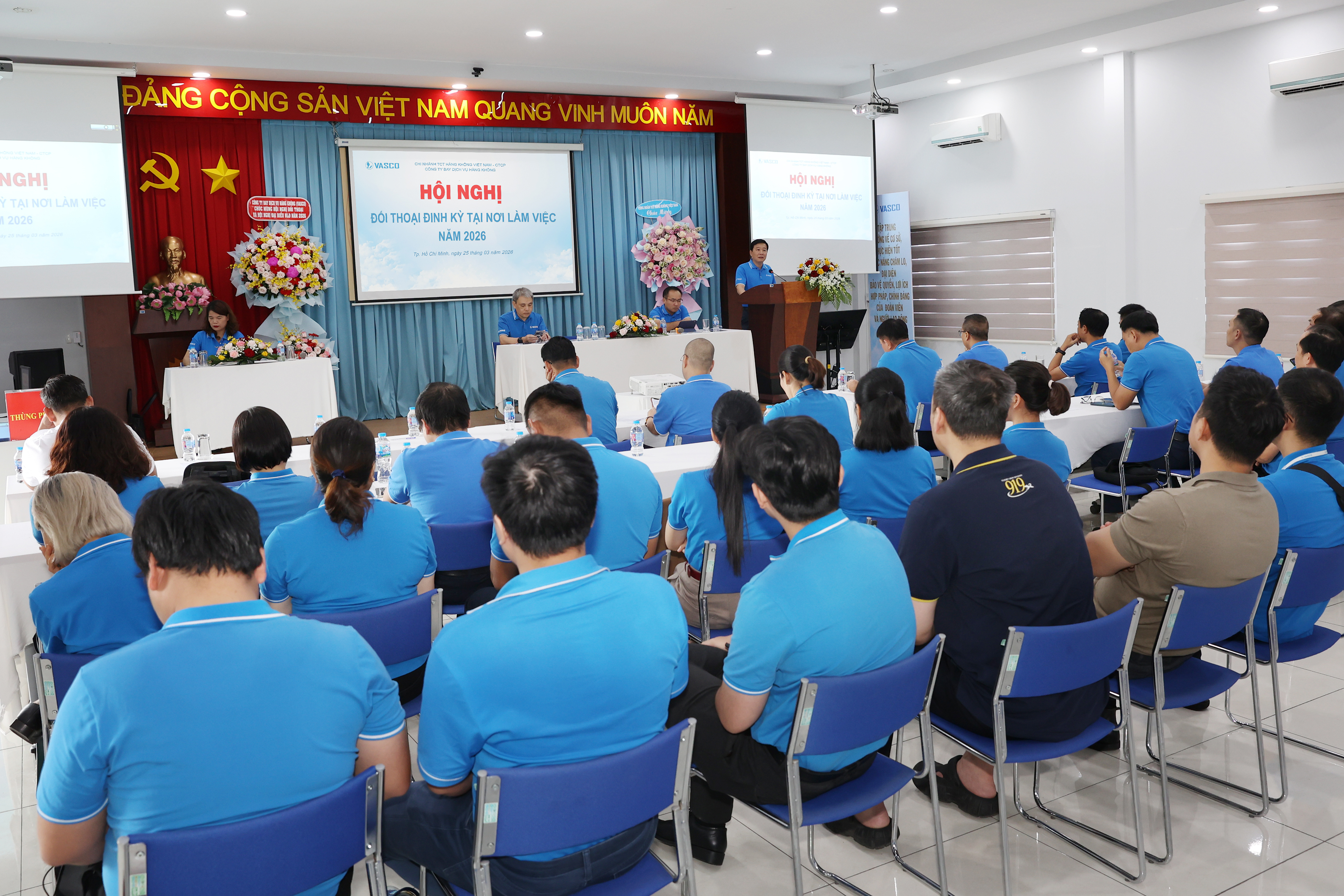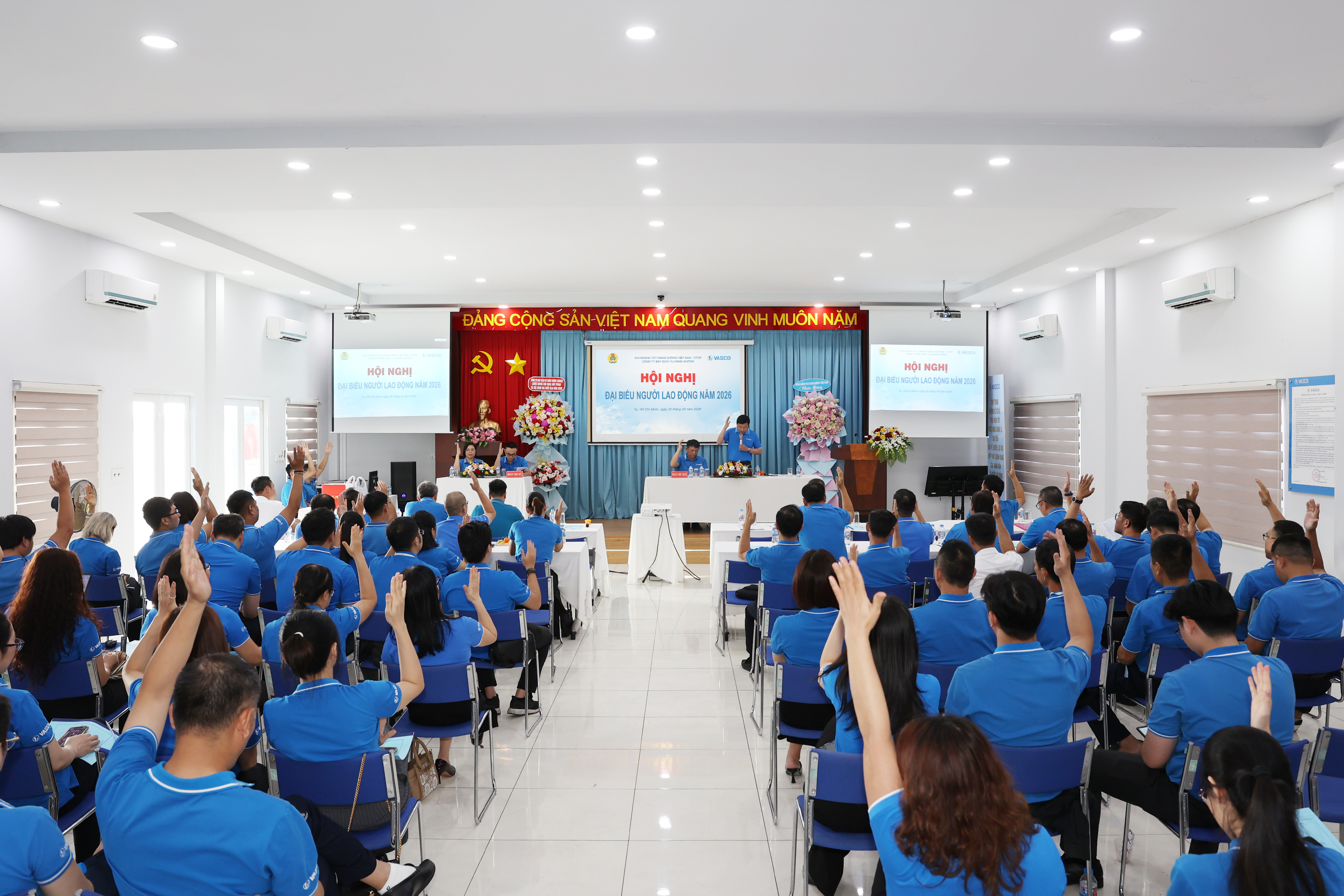 Nối tiếp mạch cảm xúc đồng lòng, Hội nghị Đại biểu Người lao động đã nhìn lại hành trình năm 2025 và xác định định hướng chiến lược cho năm 2026. Trong bối cảnh ngành hàng không còn nhiều thách thức, VASCO vẫn ưu tiên đặt mục tiêu đảm bảo thu nhập, tiền lương và các chế độ chính sách hỗ trợ người lao động lên hàng đầu.
