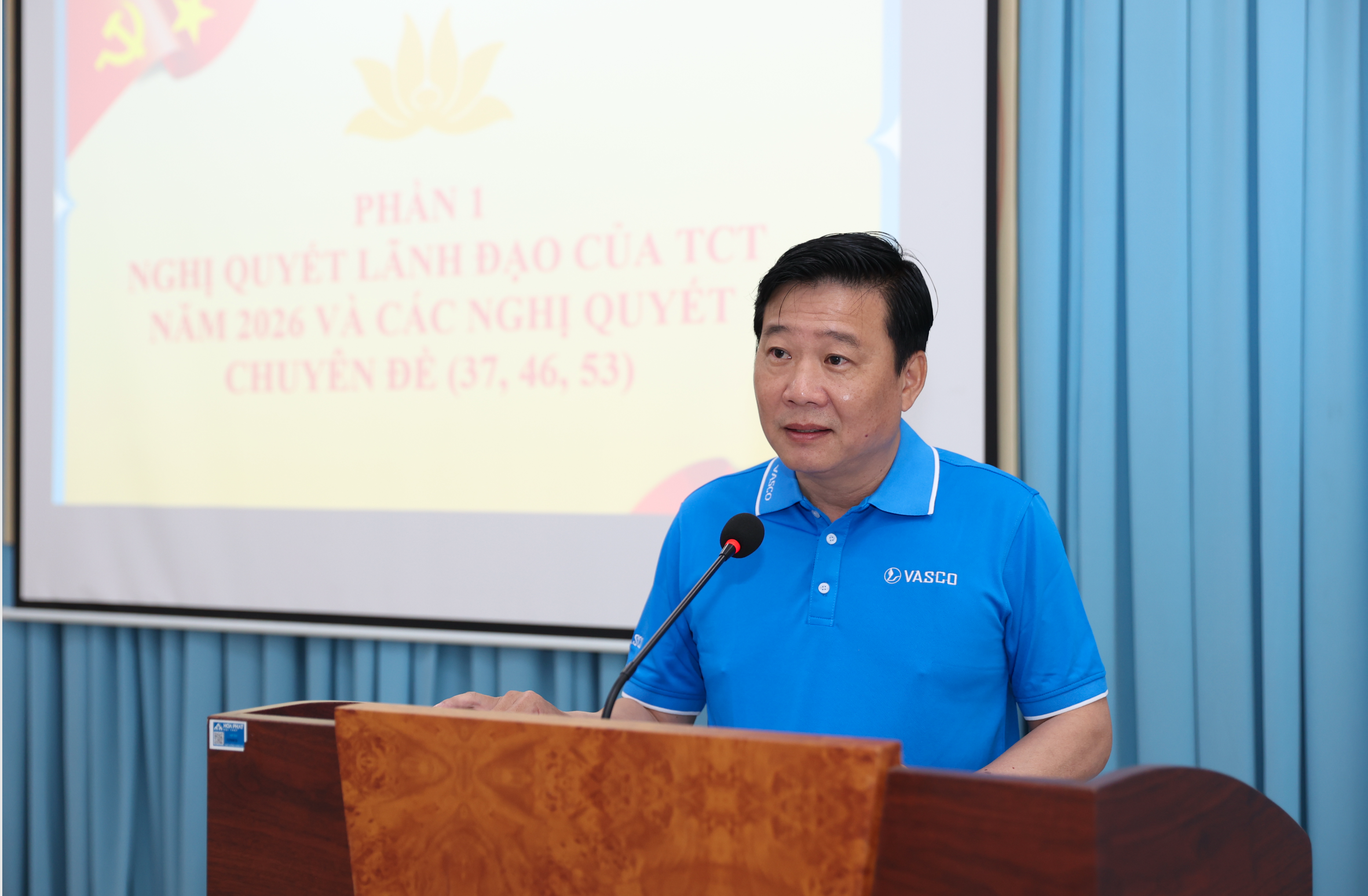 - Quán triệt Nghị quyết: Phổ biến Nghị quyết lãnh đạo nhiệm vụ năm 2026 của Tổng công ty và Nghị quyết nhiệm vụ năm 2026, Quý I/2026 của VASCO.