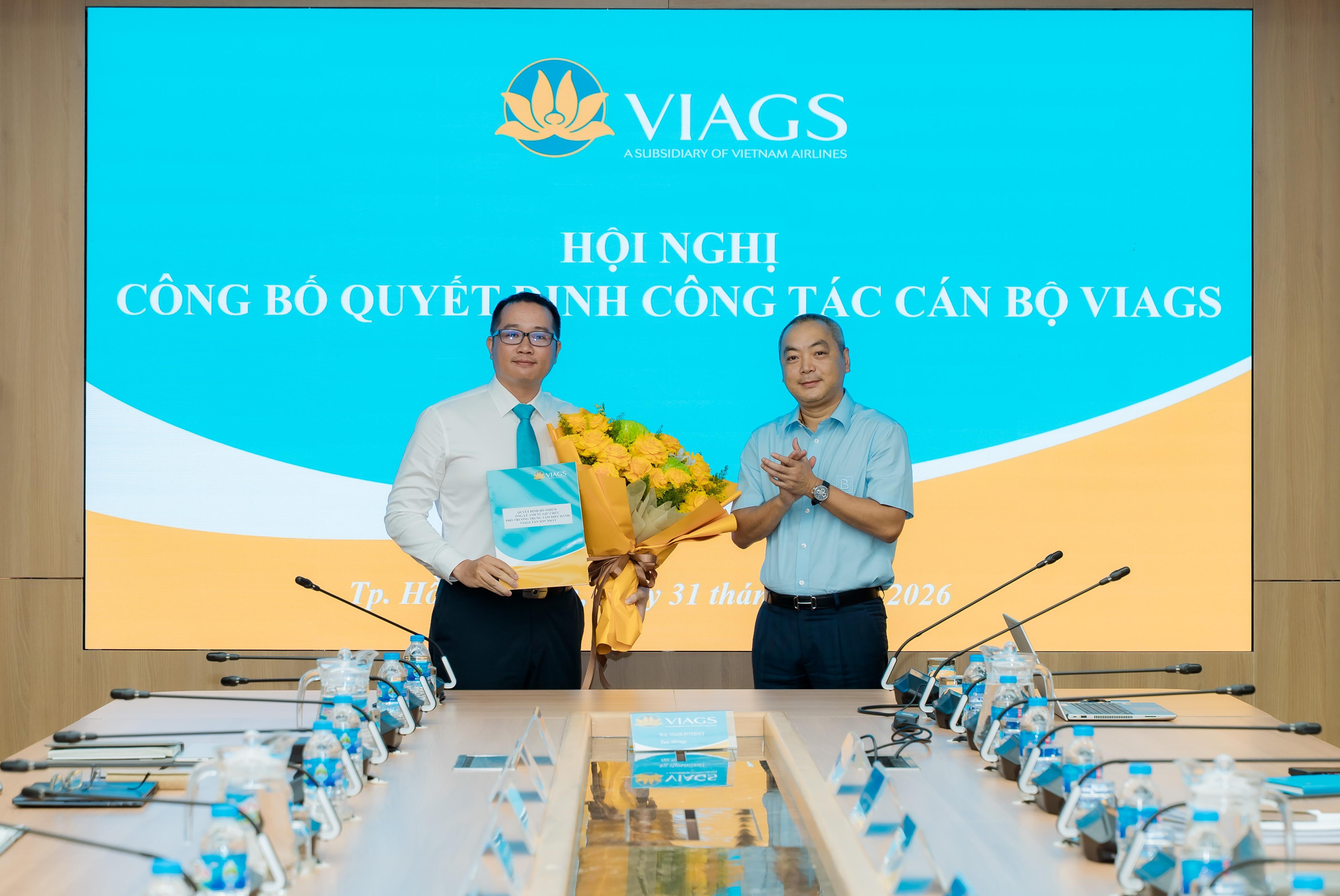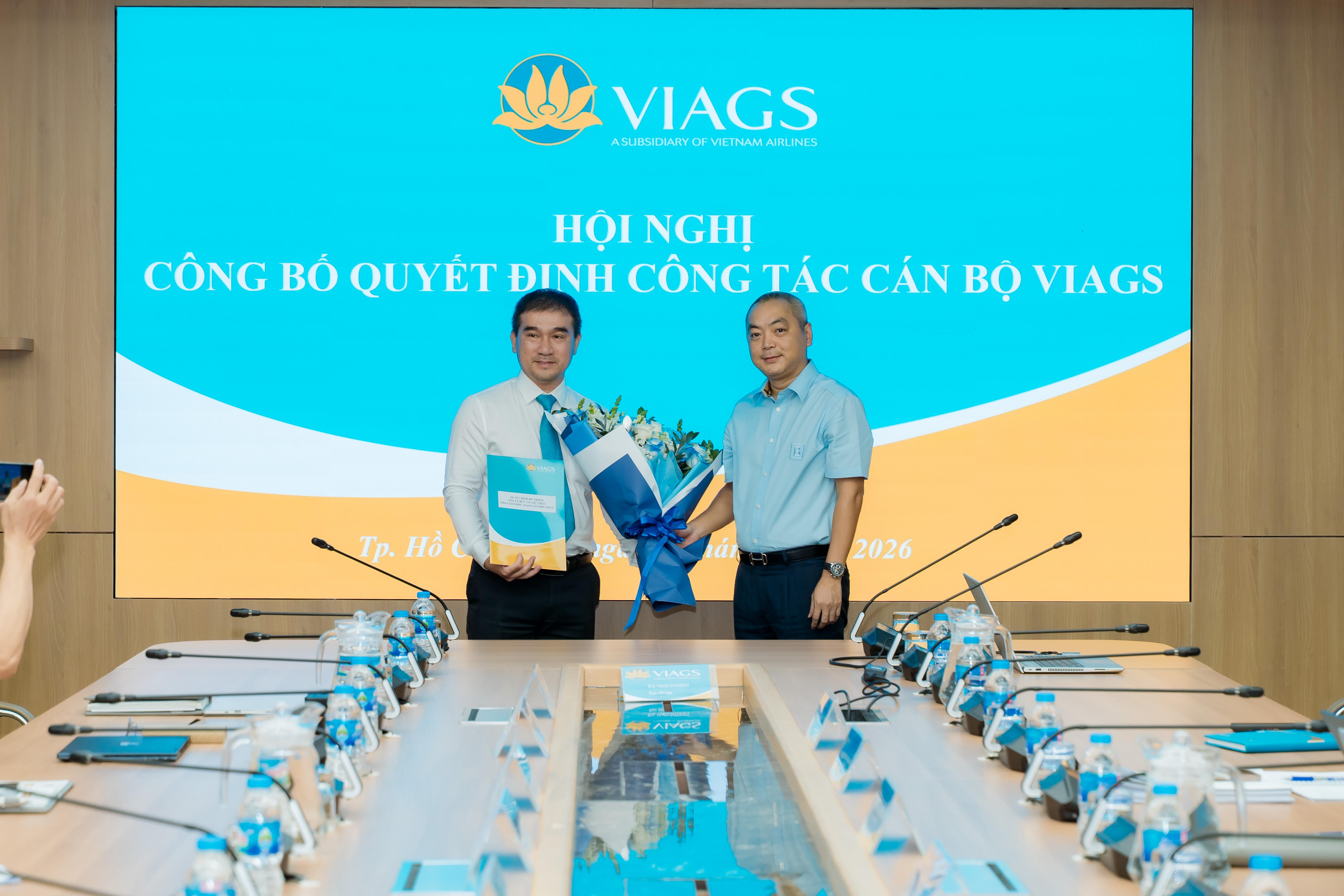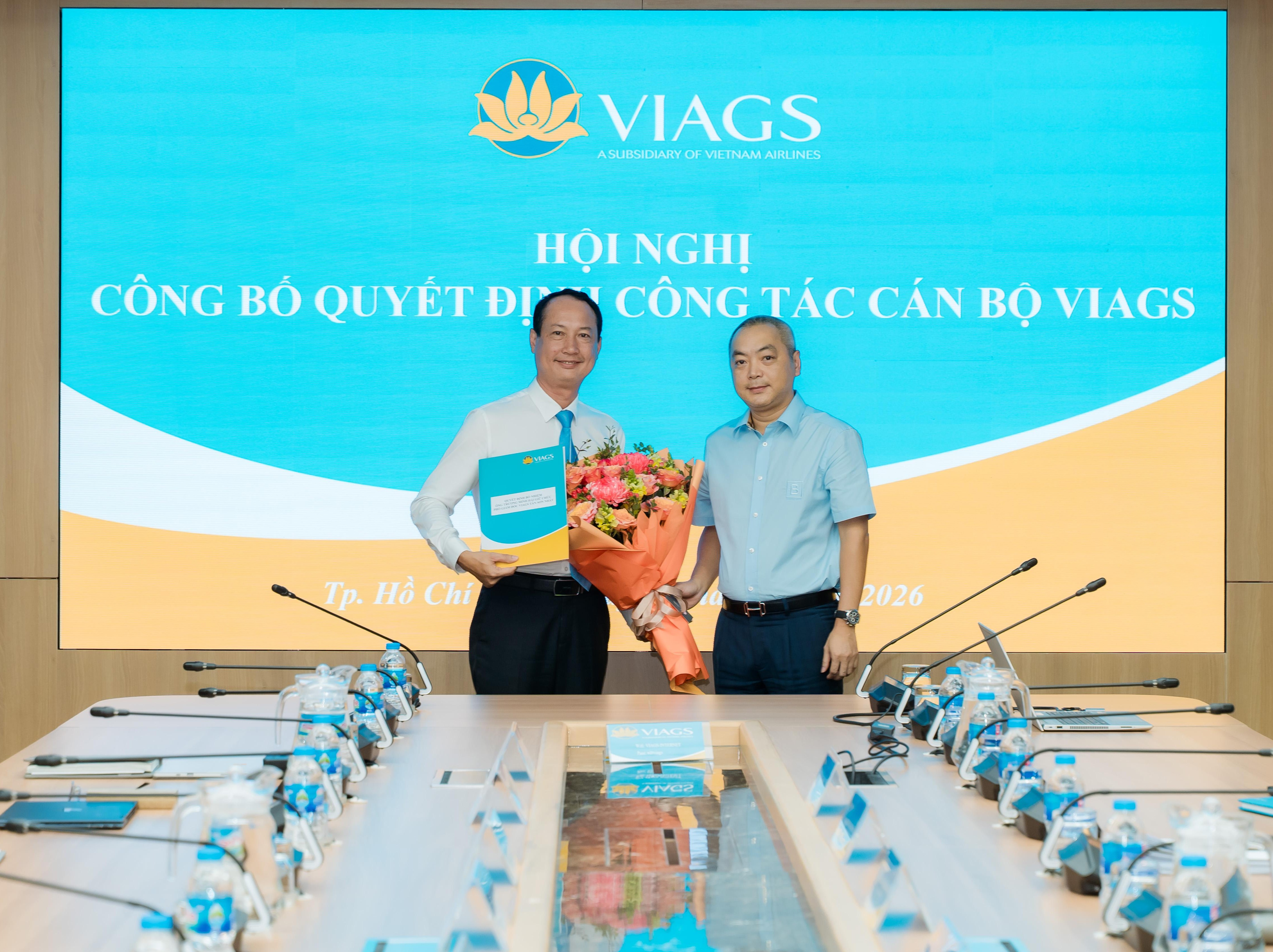 Thực hiện chủ trương kiện toàn đội ngũ cán bộ quản lý, đáp ứng yêu cầu tổ chức, điều hành trong giai đoạn phát triển mới, VIAGS đã công bố và trao các Quyết định bổ nhiệm cán bộ. Các Quyết định có hiệu lực kể từ ngày 01/4/2026, theo đó: Ông Trương Minh Hải giữ chức Phó Giám đốc VIAGS Tân Sơn Nhất kiêm Trưởng Trung tâm Phục vụ hành khách; Ông Lê Bửu Võ giữ chức Phó Giám đốc VIAGS Tân Sơn Nhất kiêm Trưởng Trung tâm Phục vụ sân đỗ và Ông Lê Anh Tú giữ chức Phó Trưởng Trung tâm Điều hành VIAGS Tân Sơn Nhất.