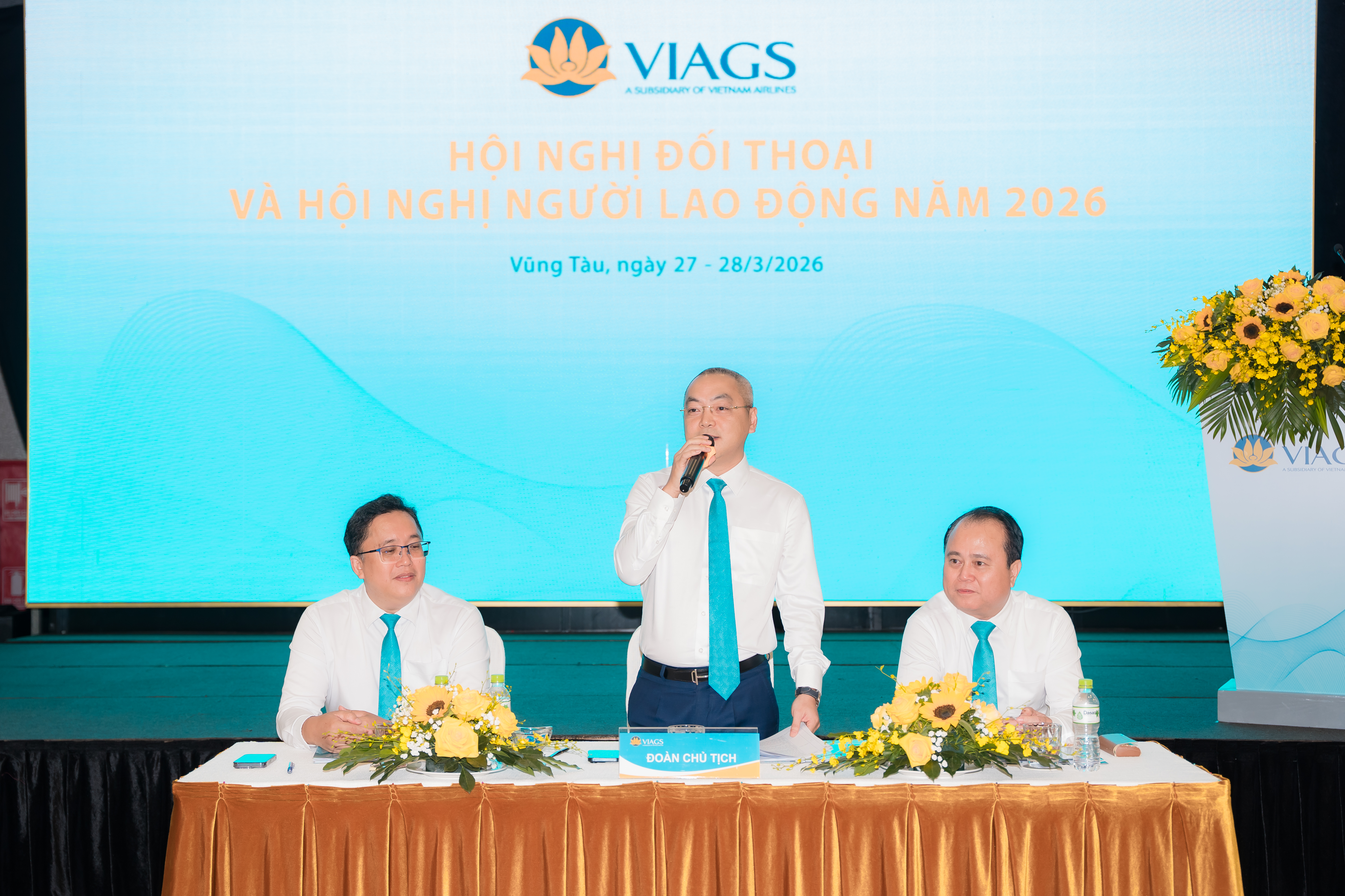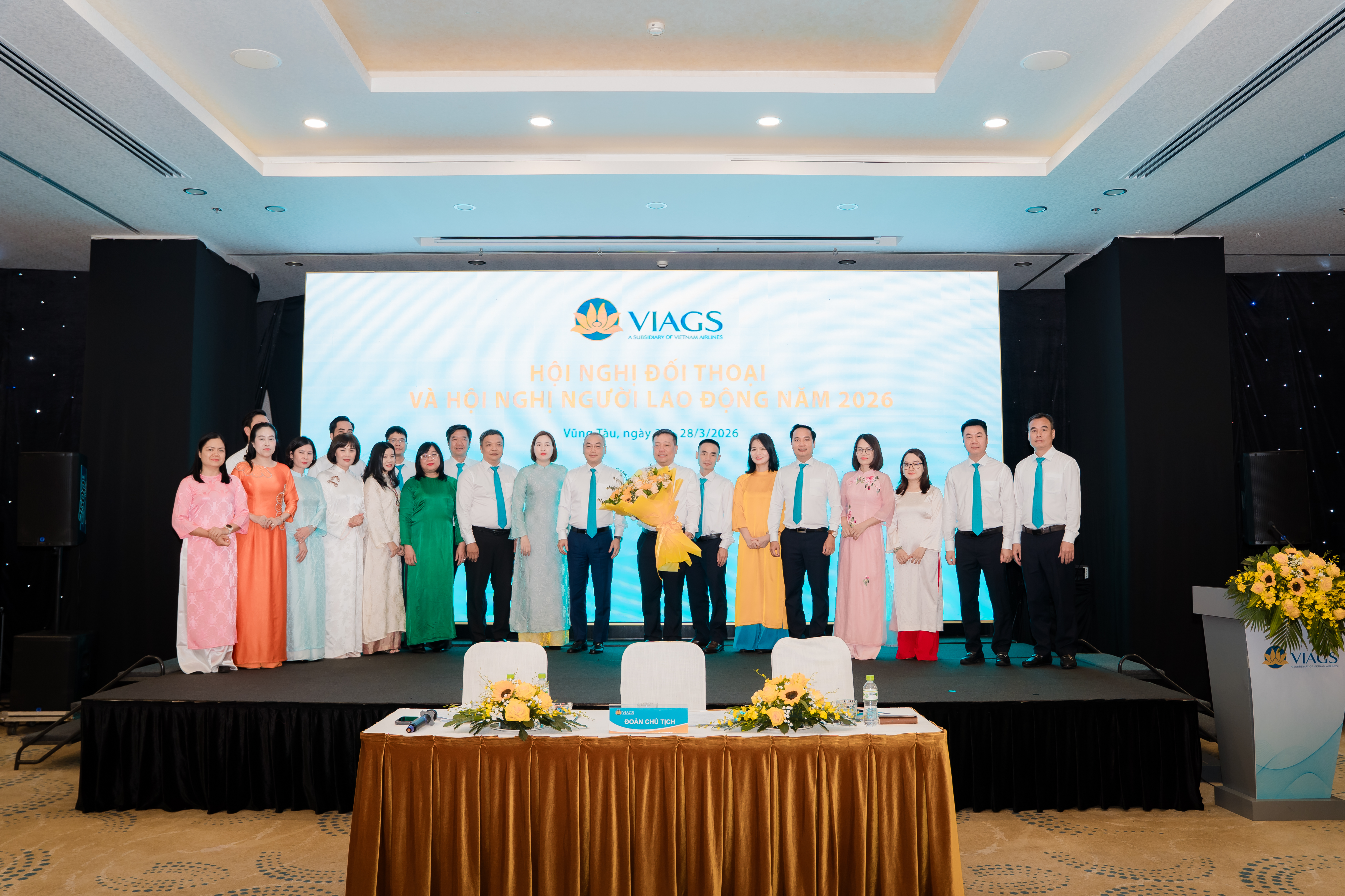 Hội nghị vinh dự đón tiếp Ông Bùi Đức Thanh – UV BCH Đảng bộ TCT HKVN, Bí thư Đảng ủy – TGĐ Công ty Cổ phần Dịch vụ Hàng không Sân bay Việt Nam (NASCO) – Thành viên HĐTV VIAGS; Ông Nguyễn Duy Việt – UV BCH Đảng bộ TCT HKVN, Bí thư Đảng Ủy, Thành viên HĐTV – Tổng Giám đốc VIAGS cùng BGĐ, Chủ tịch Công đoàn Công ty, Thủ trưởng các phòng/trung tâm KCQ và Chi nhánh và đặc biệt cùng với sự hiện diện của 110 đại biểu đại diện cho hơn 4.000 CBNV, NLĐ toàn Công ty.