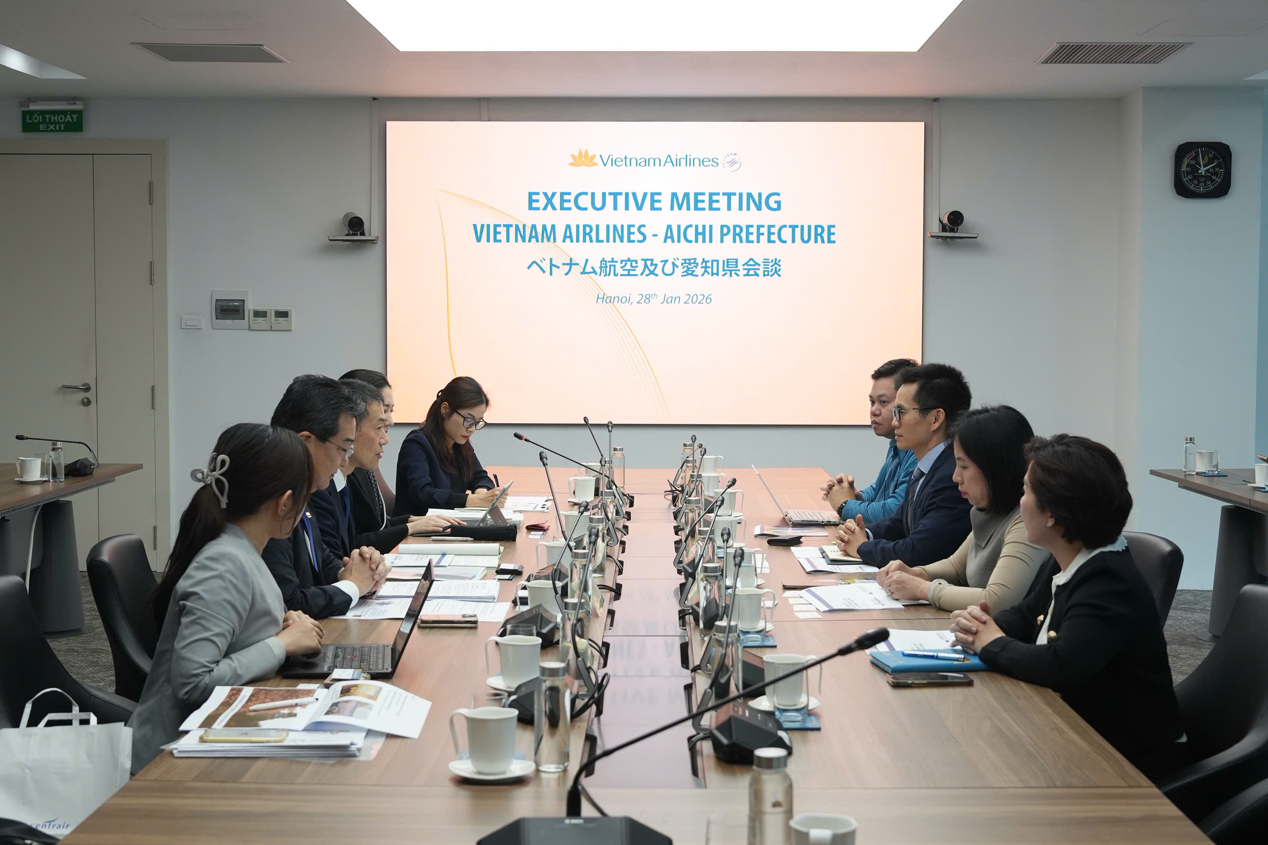 Kết thúc buổi làm việc, đại diện Chính quyền tỉnh Aichi và Cảng HKQT Chubu Centrair ghi nhận và đánh giá cao các chia sẻ từ phía Vietnam Airlines, đồng thời bày tỏ mong muốn tiếp tục duy trì trao đổi, tăng cường phối hợp trong thời gian tới.
