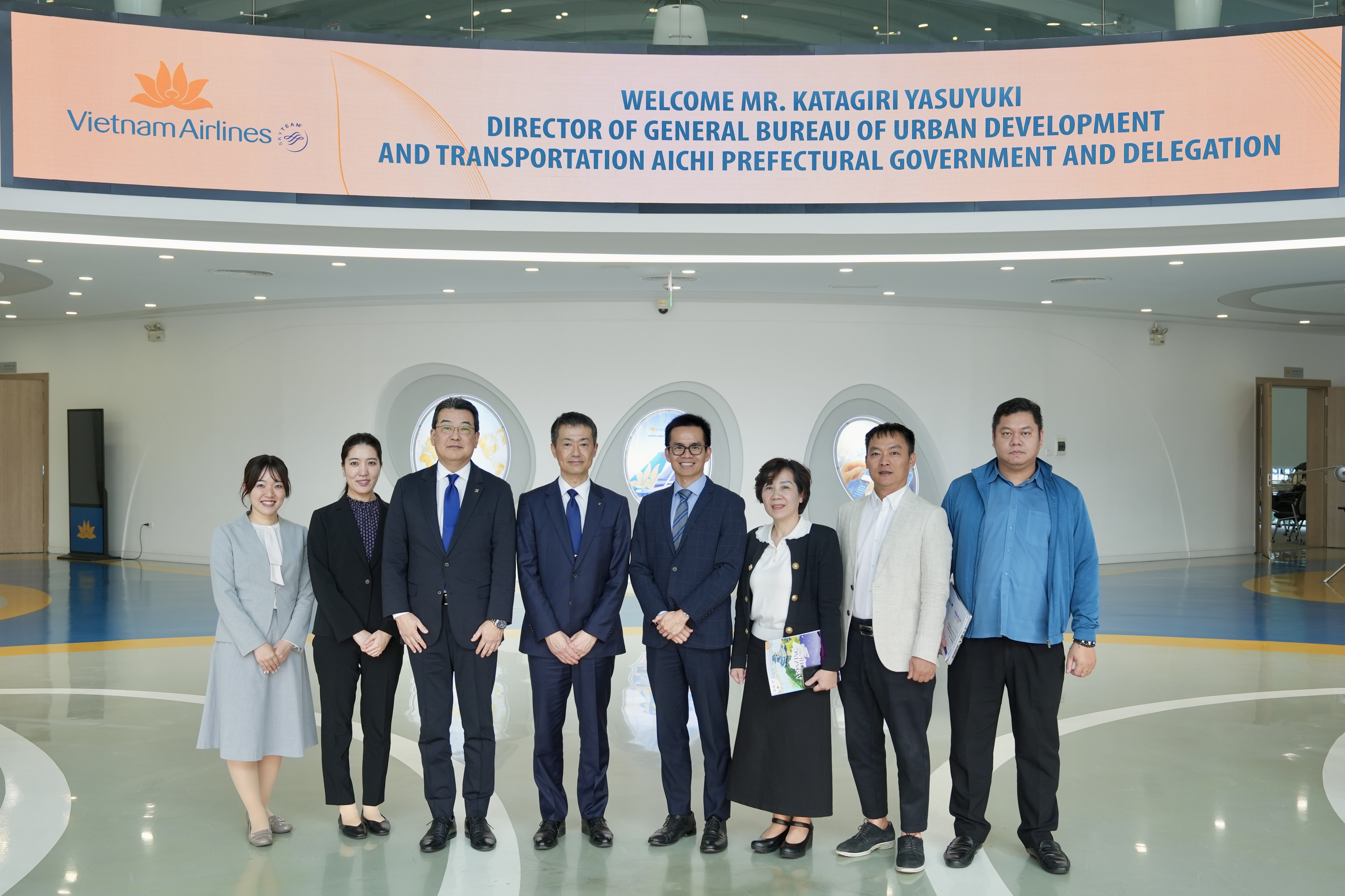 Tham dự buổi làm việc về phía tỉnh Aichi có ông Katagiri Yasuyuki – Giám đốc Cục Phát triển Đô thị và Giao thông vận tải và bà Ono Yūka – Phó Giám đốc Phòng Quản lý Hàng không Dân dụng, Cục Phát triển Đô thị và Giao thông vận tải.