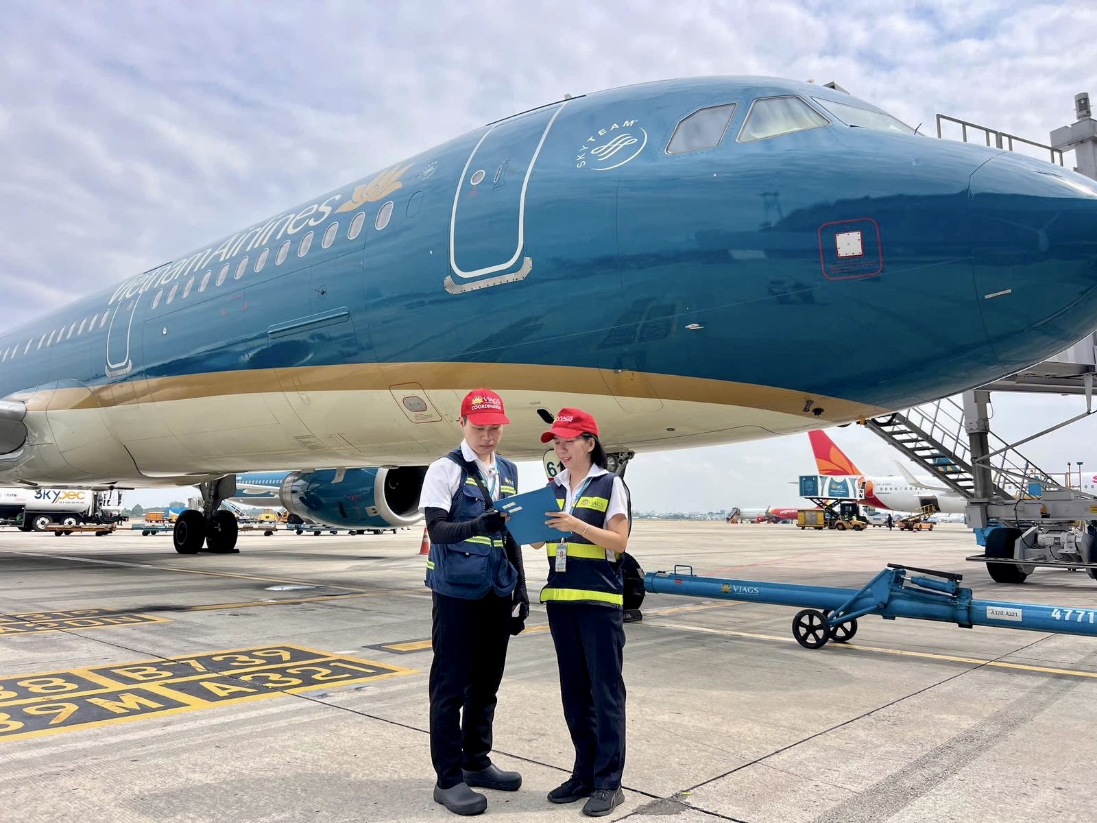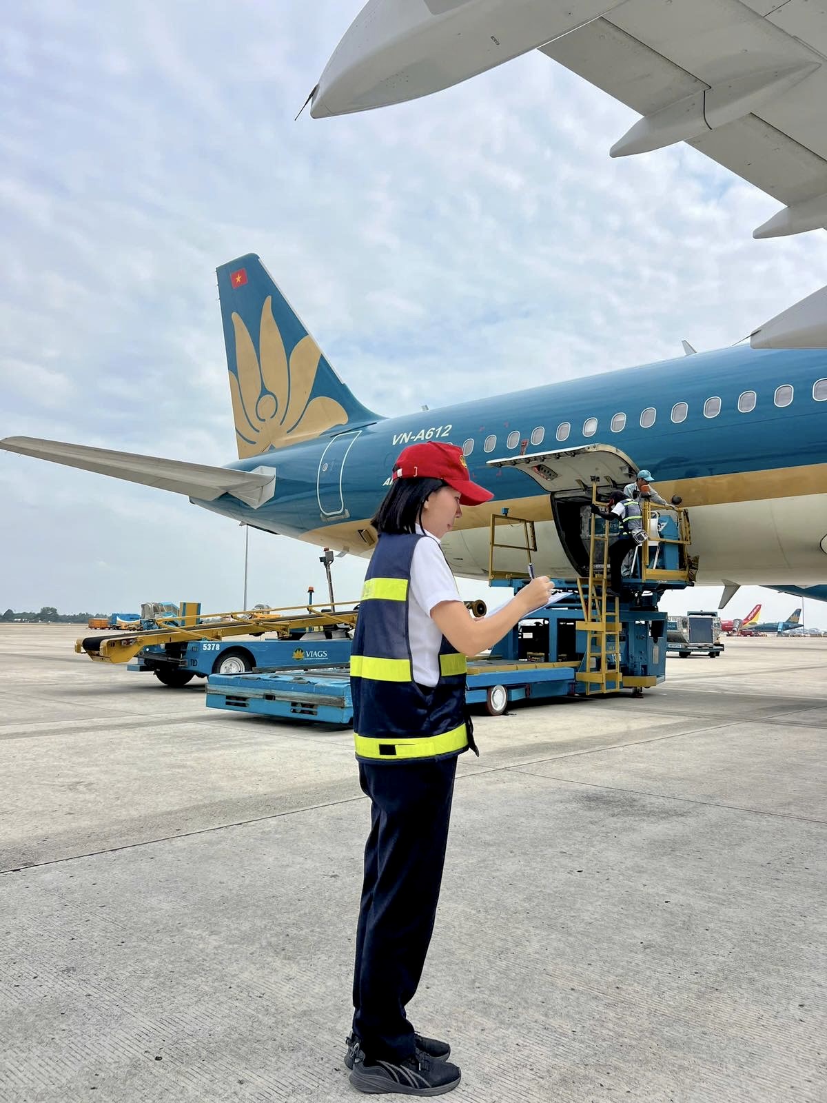 Chị Lê Thị Nga (Đội Hướng dẫn chất xếp, VIAGS Tân Sơn Nhất) là một hình ảnh tiêu biểu như thế. Trong vai trò Giám sát sân đỗ, chị cùng các đồng nghiệp chính là những “mắt xích” quan trọng giúp mỗi chuyến bay không chỉ cất cánh đúng giờ, mà còn đạt tới sự an toàn tuyệt đối trong từng milimet cân bằng. Đằng sau những bóng hồng ấy không chỉ là áp lực từ bảng tính tải khô khan, mà còn là trách nhiệm giữ gìn sự bình yên cho hàng trăm hành khách trong mỗi hành trình bay.