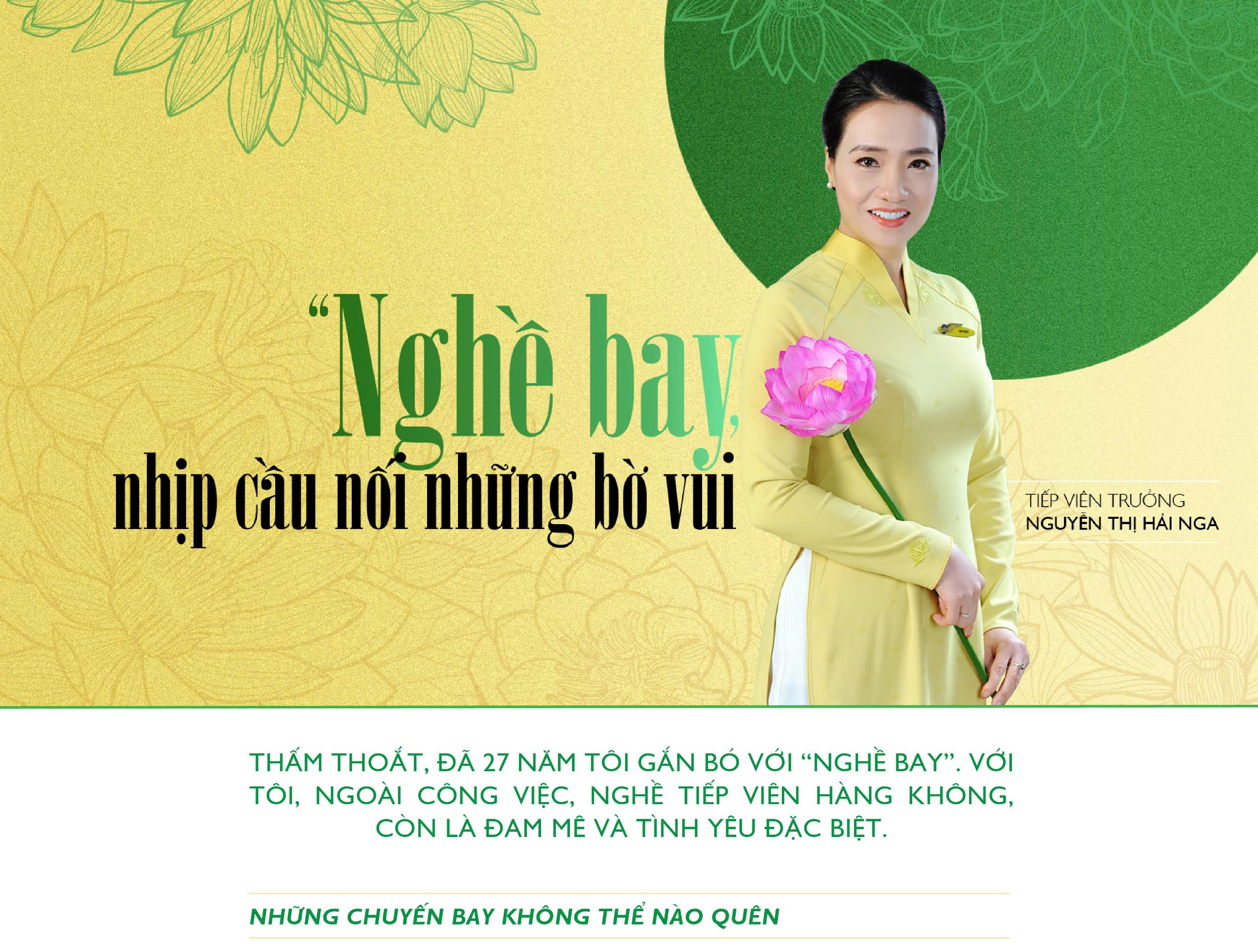 “Hơn tất cả, sự tự tin của mỗi cá nhân còn được tiếp thêm sức mạnh bởi niềm tự hào thương hiệu sâu sắc. Chúng ta tự tin vì biết rằng sau lưng mình là tầm vóc của một Hãng hàng không Quốc gia với bề dày lịch sử và khát vọng vươn tầm thế giới. Được đứng trong hàng ngũ của Vietnam Airlines không chỉ là một công việc mà là vinh dự gắn liền với trách nhiệm và bản sắc.”, cơ trưởng Trần Việt Dũng chia sẻ. Niềm tự hào là một phần của đại gia đình “Sen Vàng” ấy đã biến sự tự tin cá nhân thành sức mạnh tập thể, giúp chúng ta cam kết an toàn tuyệt đối và mang đến những dịch vụ tận tâm nhất, cùng nhau giữ vững bầu trời bằng sự chuẩn xác và niềm tin sắt đá của những người làm nghề chân chính.
