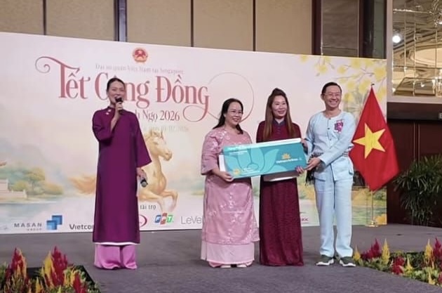 Chương trình Tết Cộng đồng 2026 tại Singapore diễn ra sôi nổi với các tiết mục văn nghệ, trình diễn thời trang của bà con người Việt, các trò chơi giao lưu và không gian ẩm thực truyền thống, thực sự mang đến cảm giác thân thương, gần gũi như đang sum họp bên mâm cơm gia đình nơi quê nhà. Xuyên suốt sự kiện là các phần bốc thăm trúng thưởng đầy hào hứng, trong số đó có giải thưởng đặc biệt từ Vietnam Airlines đã góp phần lan tỏa sự ấm áp, sẻ chia và gắn kết nguồn cội đến từng người tham dự.