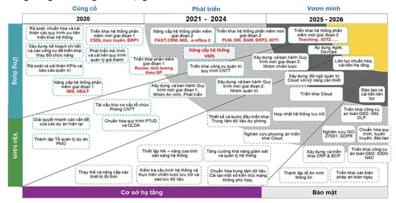 Chi bộ phòng Công Nghệ Thông Tin lãnh đạo Đảng viên đi đầu trong công tác tham mưu, triển khai các giải pháp công nghệ phục vụ chuyển đổi số, phát huy tinh thần tiên phong, gương mẫu của đảng viên trong đổi mới sáng tạo, cải tiến quy trình, ứng dụng CNTT; tập trung vào ba trụ cột chính trong công tác chuyển đổi số là: Công nghệ số – Dữ liệu số – Văn hóa số. Theo đó hàng loạt các dự án, kế hoạch, chương trình đã được thực hiện góp phần không nhỏ vào công tác chuyển đổi số doanh nghiệp.