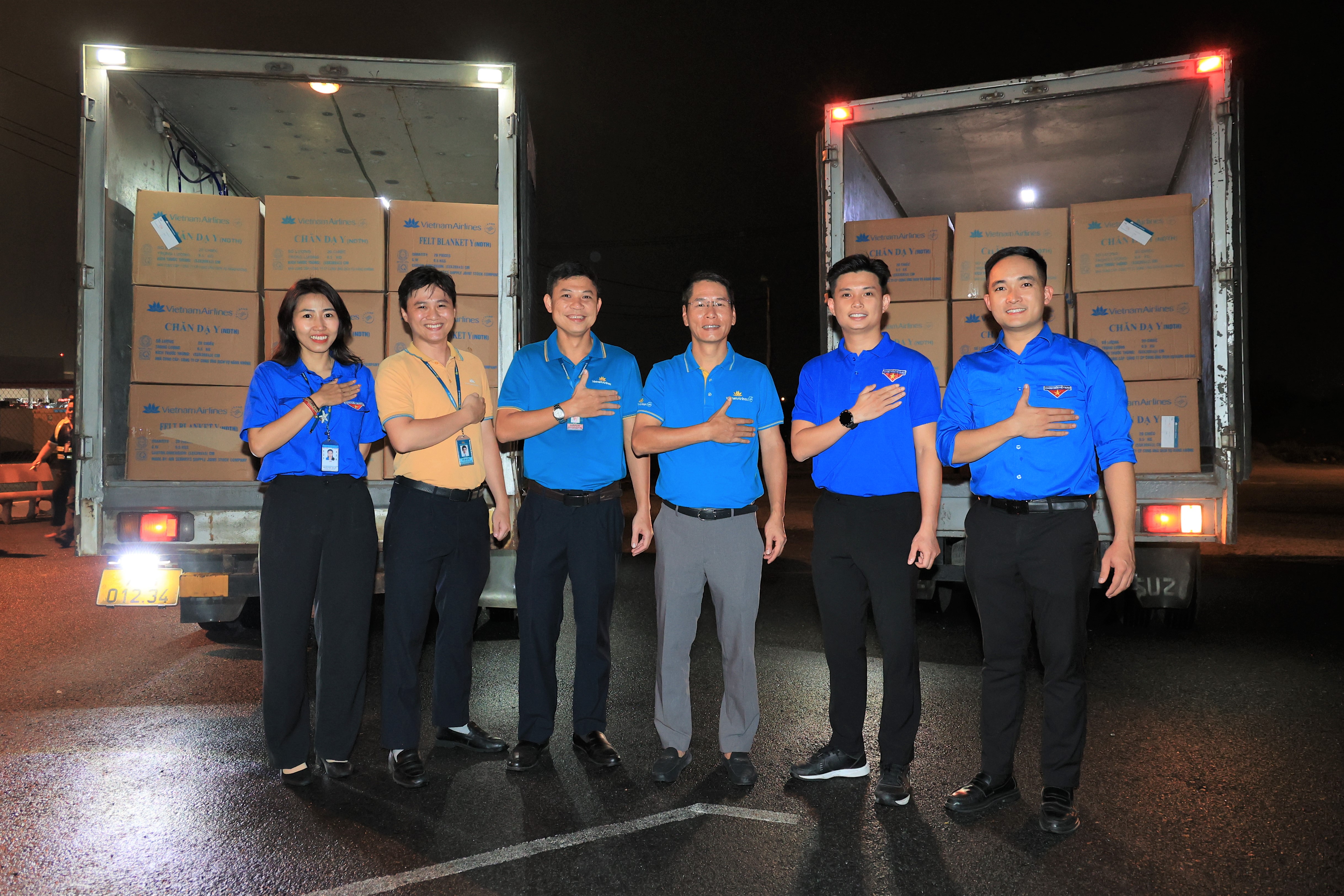 Ngày 30/11, Đoàn Thanh niên Tổng Công ty Hàng không Việt Nam đã phối hợp cùng Công ty TNHH MTV Dịch vụ Mặt đất sân bay Việt Nam (VIAGS) và Công ty Cổ phần Dịch vụ Hàng hóa Nội Bài (NCTS) đóng gói và vận chuyển 2.000 chiếc chăn. Đồng chí Nguyễn Văn Thành – Bí thư Đoàn Thanh niên trực tiếp có mặt cùng các đơn vị hoàn tất công tác chuẩn bị.